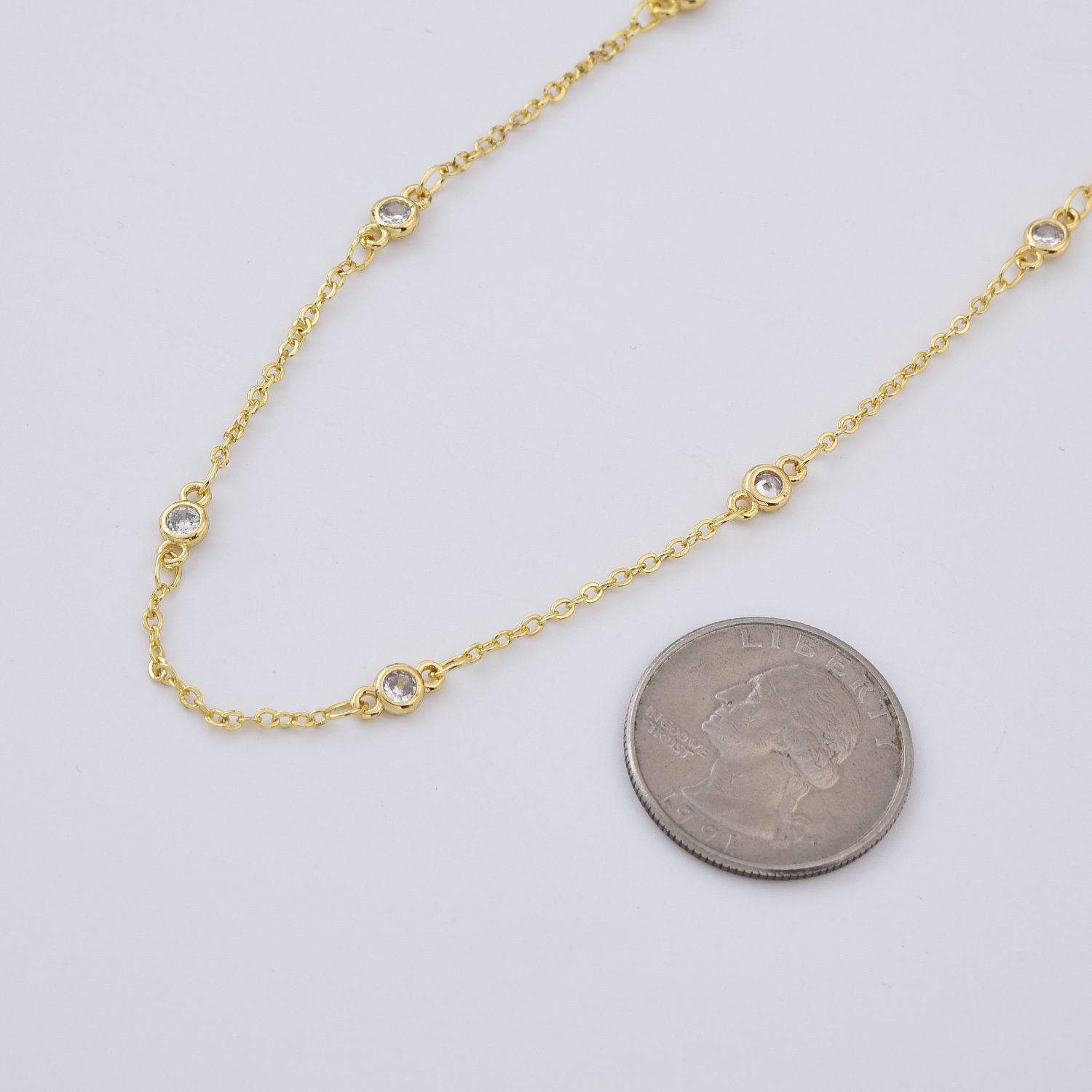 18K Gold Chain Round CZ Chain by Foot, Unfinished Bulk Chain By Foot, Cubic Chains, Tiny CZ Chains, Ideal for Lariat Necklace, CH002
