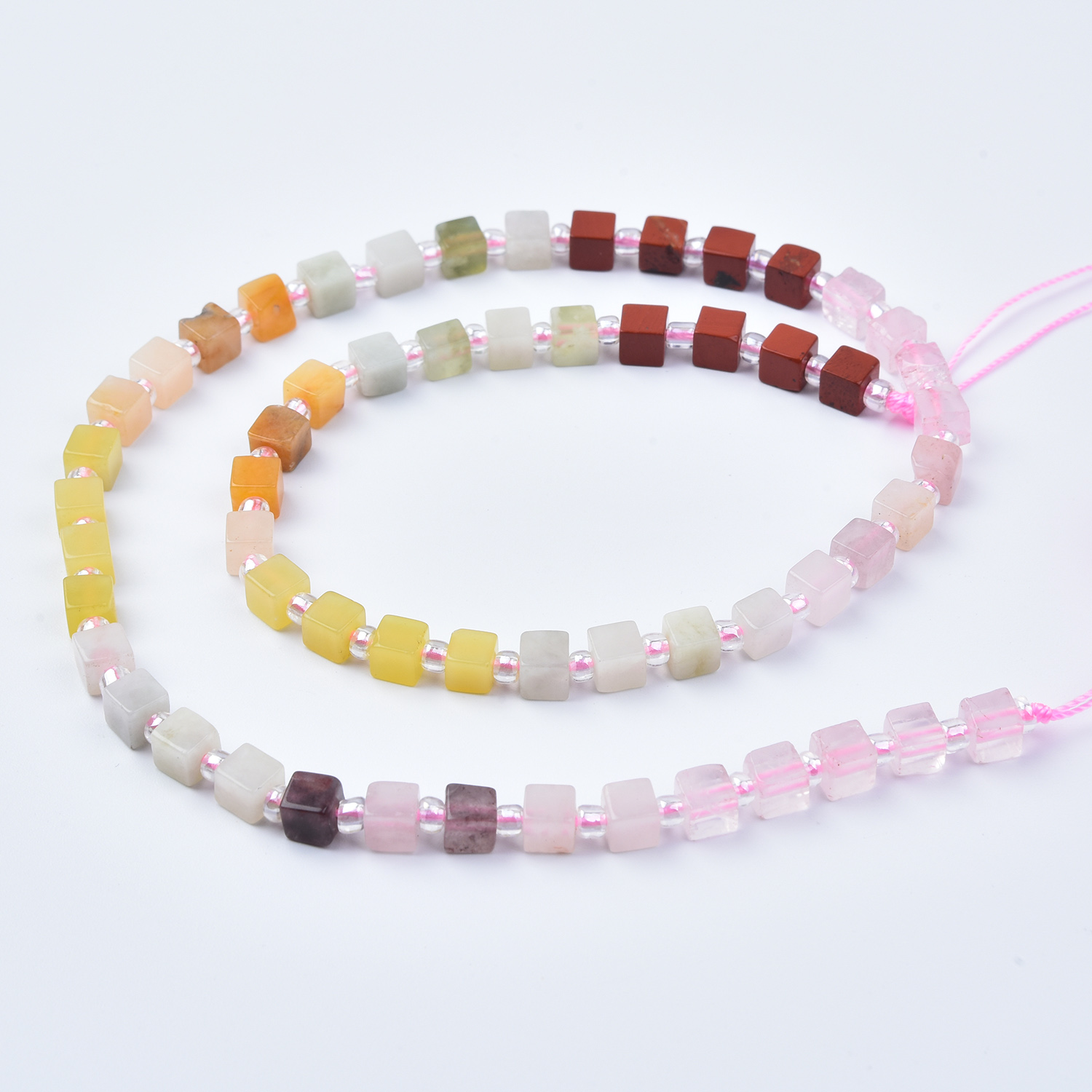 Bring soft earthy color and gentle, meaningful energy to your jewelry creations with this 4mm Smooth Cube Gemstone Bead Strand Mix (GRN791). This full 15.5″ strand features a calming pastel palette—blush pink, creamy white, muted yellow, soft peach, sage green, and warm brick red—perfect for modern boho jewelry, minimalist designs, and delicate everyday pieces.