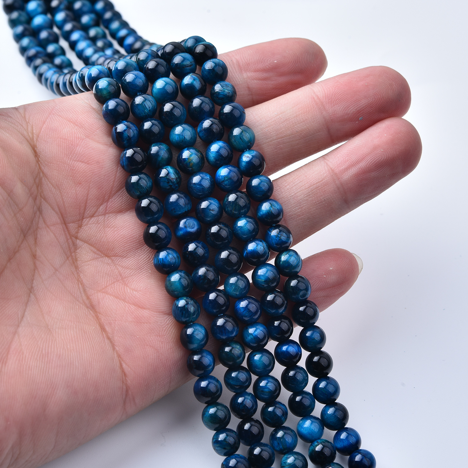 Blue Tiger Eye is prized for its silky sheen and deep, dramatic color. The 5A quality ensures consistent polish and vibrant flash, making these beads a favorite for premium jewelry designs. Choose 6mm for refined, stackable pieces or 8mm for bold, masculine styles.