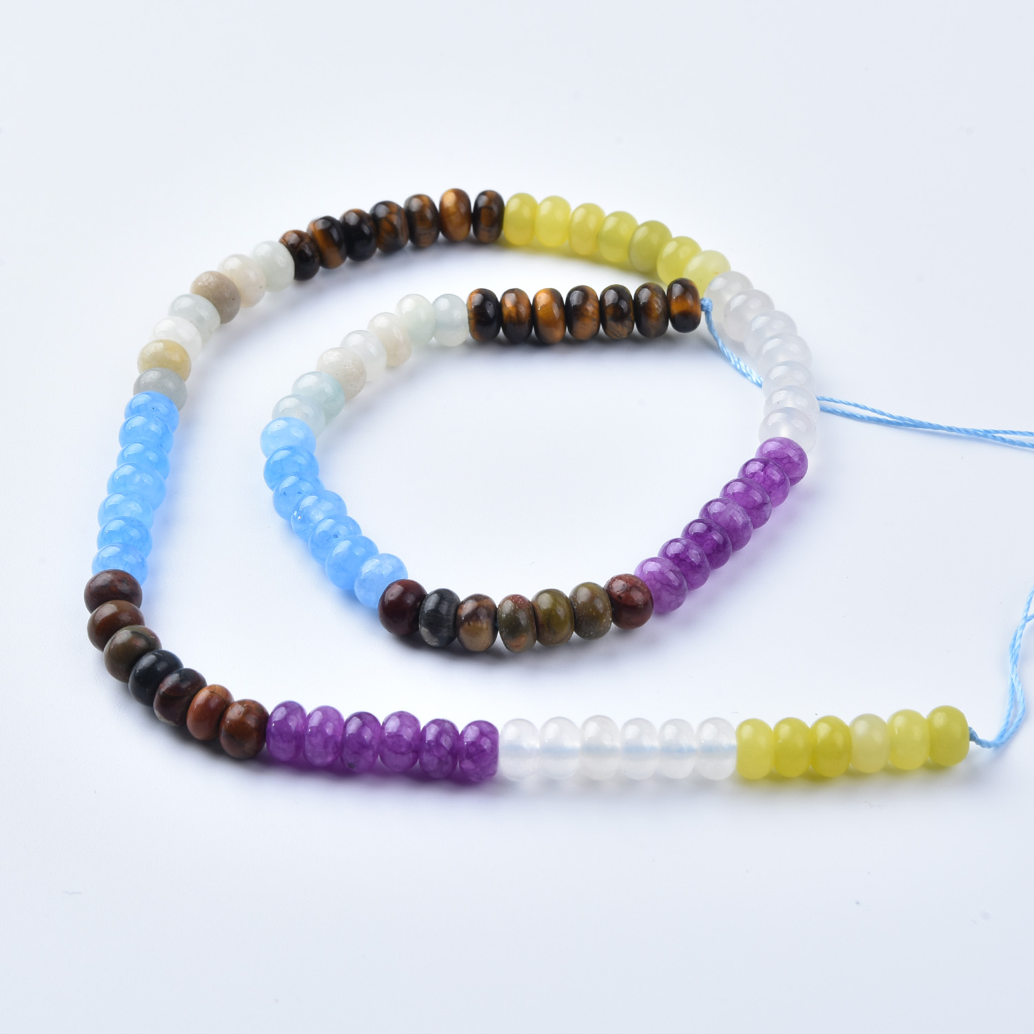 Bring striking color and meaningful energy to your jewelry creations with this 6mm Smooth Rondelle Gemstone Bead Strand Mix (GRN743). This full 15.5″ strand features a bold, balanced palette—sunny yellow, icy white, vibrant sky blue, rich purple, and earthy brown tiger eye tones—perfect for modern color-block designs and statement pieces. ✨