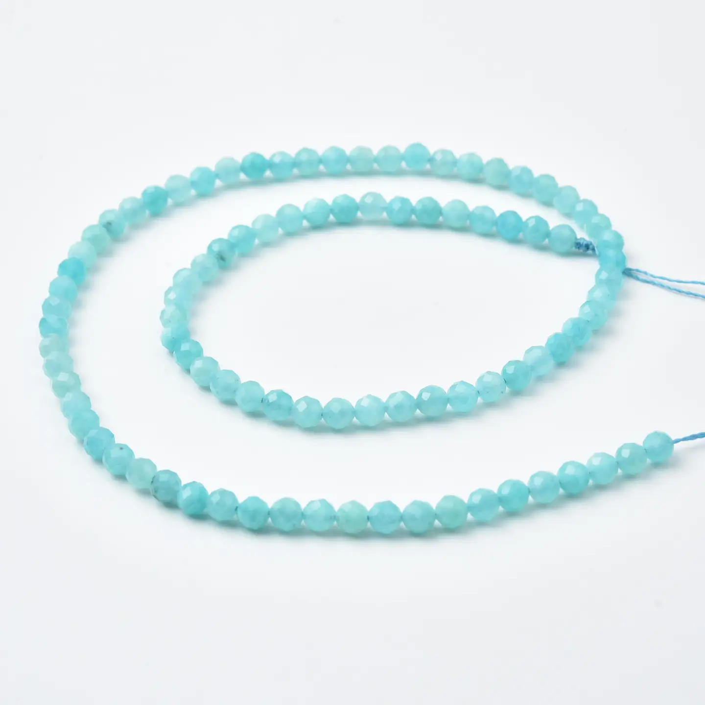 Bring fresh, beachy elegance to your jewelry designs with these High Quality Genuine Amazonite Faceted Micro Round Beads. In 4mm, each bead is expertly faceted to catch the light beautifully, showcasing Amazonite’s soothing seafoam-aqua tones — a gemstone loved for calm energy, harmony, and truthful expression.