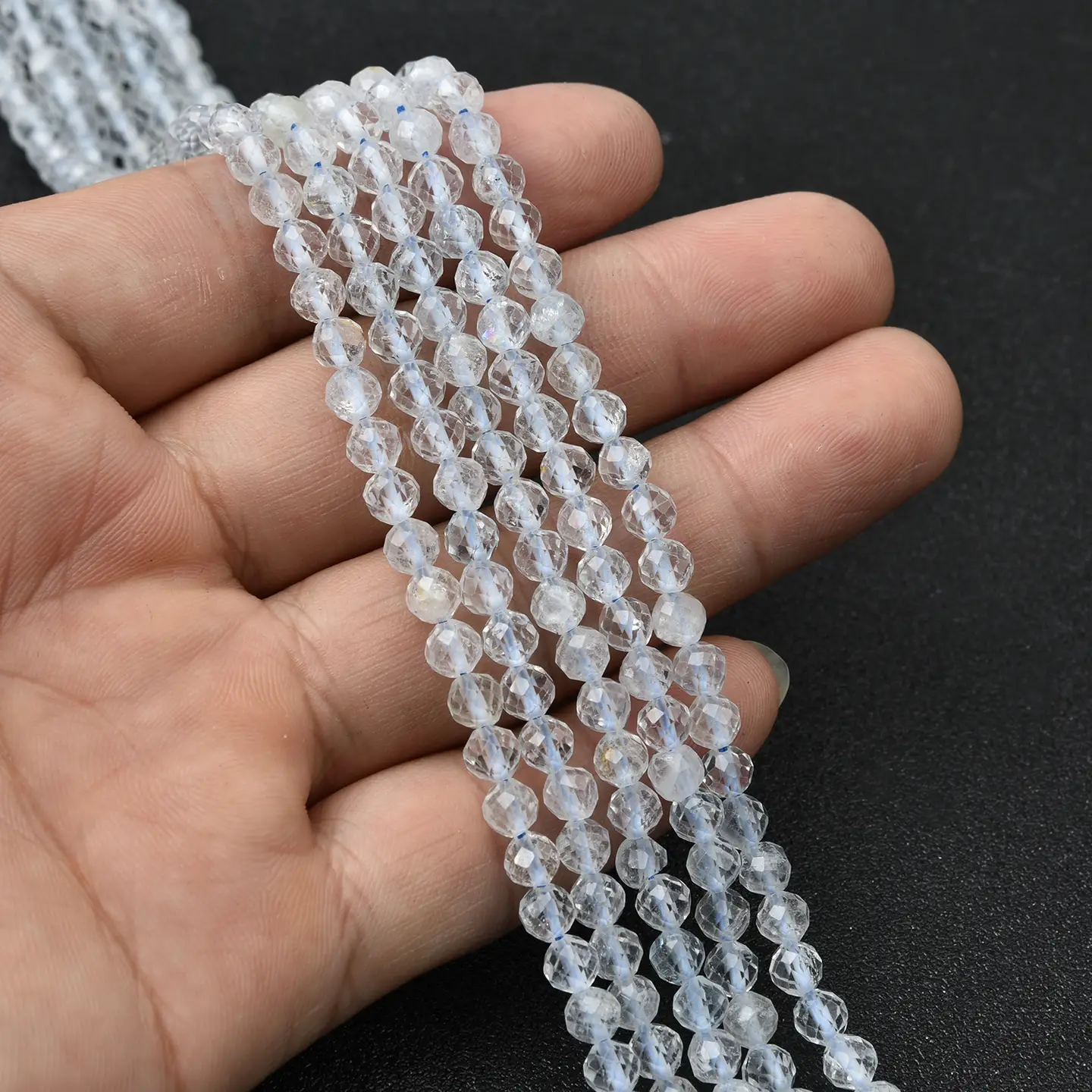 Aquamarine’s soft, translucent blues create a refined, high-end look that pairs beautifully with pearls, moonstone, quartz, silver, and gold findings. These micro faceted rounds add delicate shimmer, texture, and fresh color to minimalist, bridal, and luxury jewelry designs.