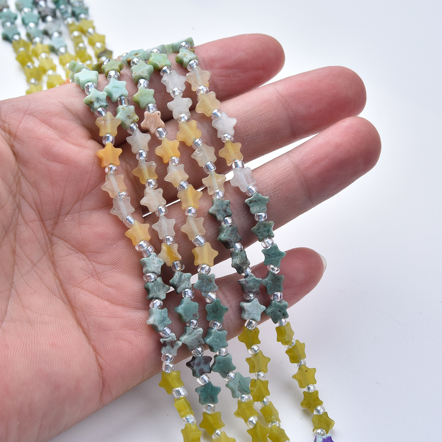 These mixed gemstone stars offer a bright and energetic color palette that adds a pop of natural beauty to any design. The combination of opaque jaspers and translucent quartz provides a stunning visual contrast, making these beads a favorite for creative jewelry makers looking for something truly special.