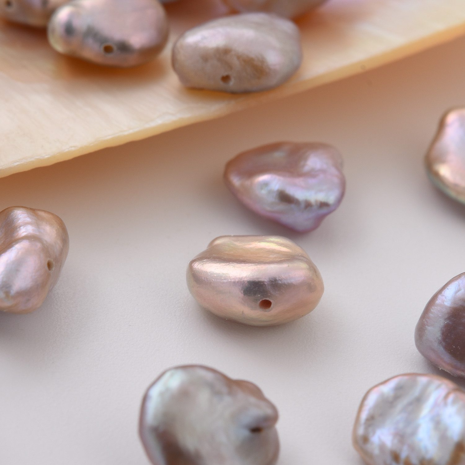 Add a whisper of sunset colors and organic elegance to your designs with these exquisite Baroque Freshwater Pearls. Each pearl features a beautiful pale salmon and lavender-purple hue with that signature baroque shape, catching light with a soft iridescent glow perfect for romantic, one-of-a-kind jewelry.