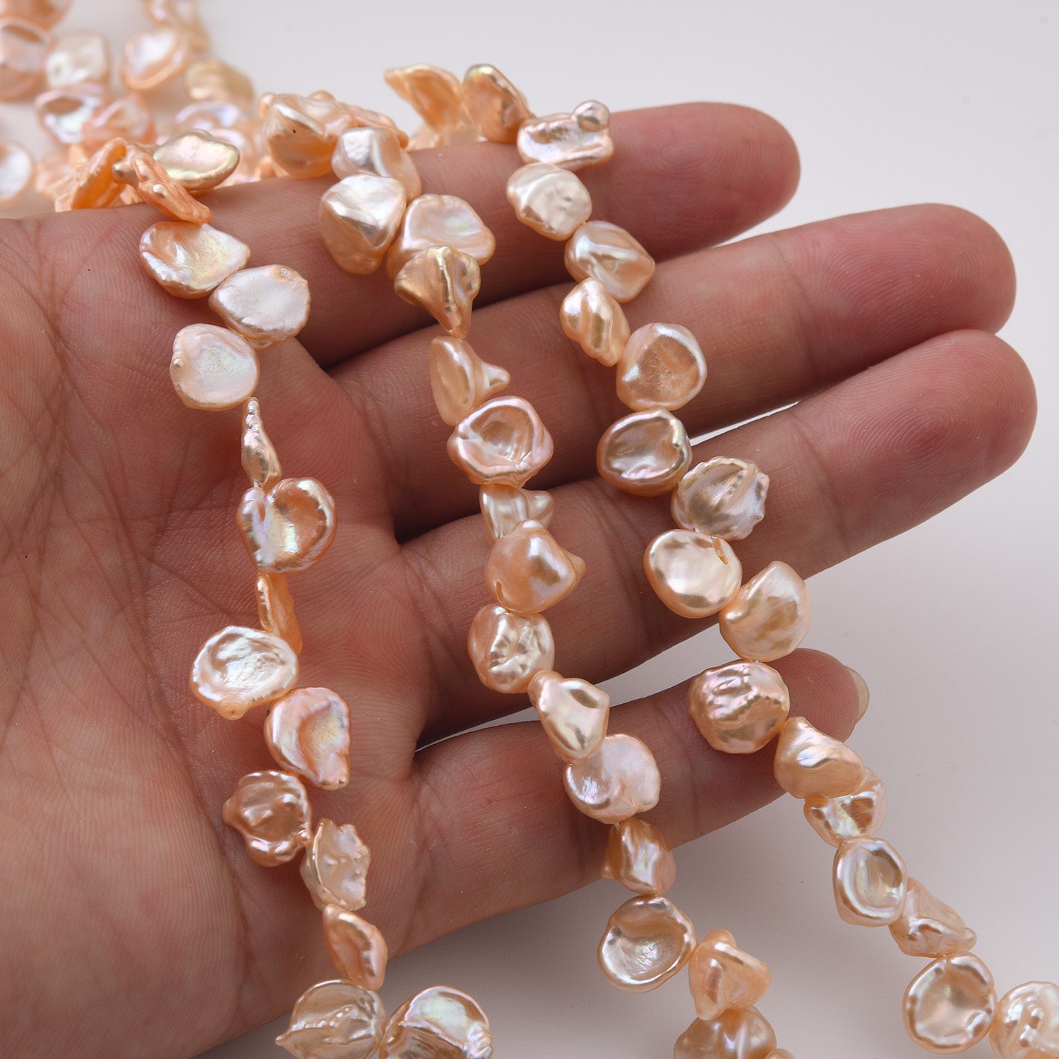 These unique salmon-purple pearls offer a delicate color palette that’s both romantic and sophisticated. The baroque shapes ensure each piece you create is truly unique, perfect for adding organic elegance to bridal jewelry or special occasion designs.
