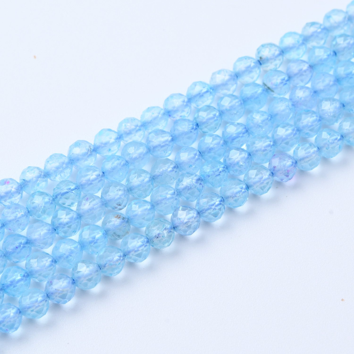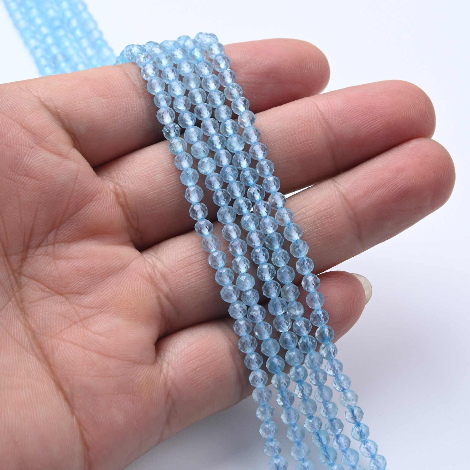 Blue Topaz offers a luminous, sky-blue glow perfect for fine jewelry. These 3.5mm micro faceted rounds are ideal for dainty bracelets, elegant necklaces, December birthstone pieces, and upscale handmade gifts.