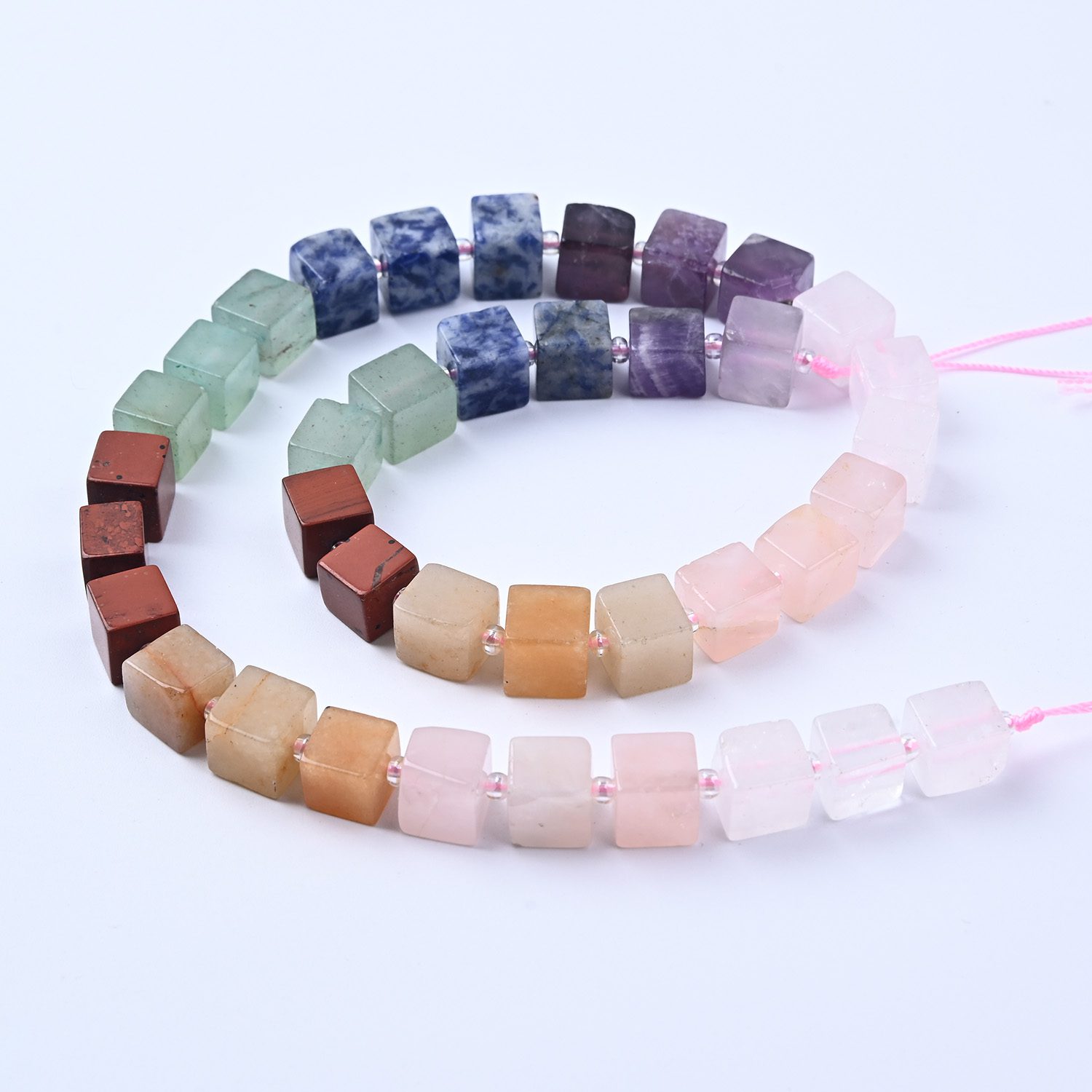 This set offers a serene color palette of soft pinks, deep blues, and lavender, making it ideal for creating elegant and meaningful jewelry. The uniform cube shape is perfect for modern, stackable designs that promote a sense of tranquility and emotional well-being.