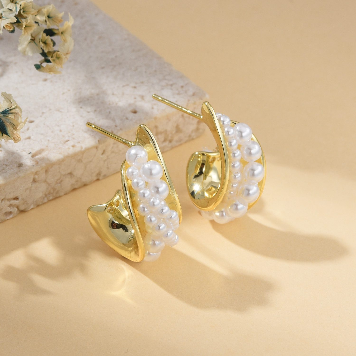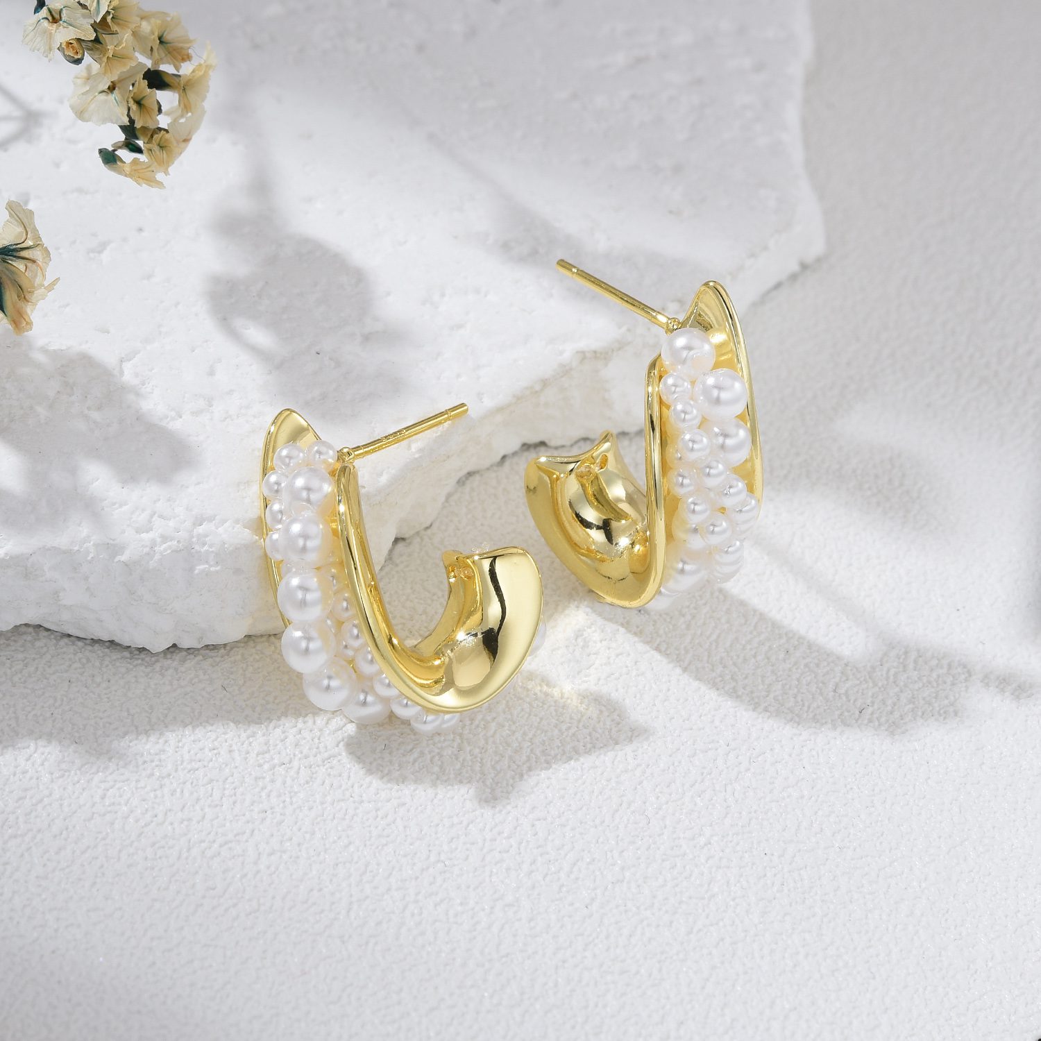 Material: 925 Sterling silver post, Gold plated brass, Pearl