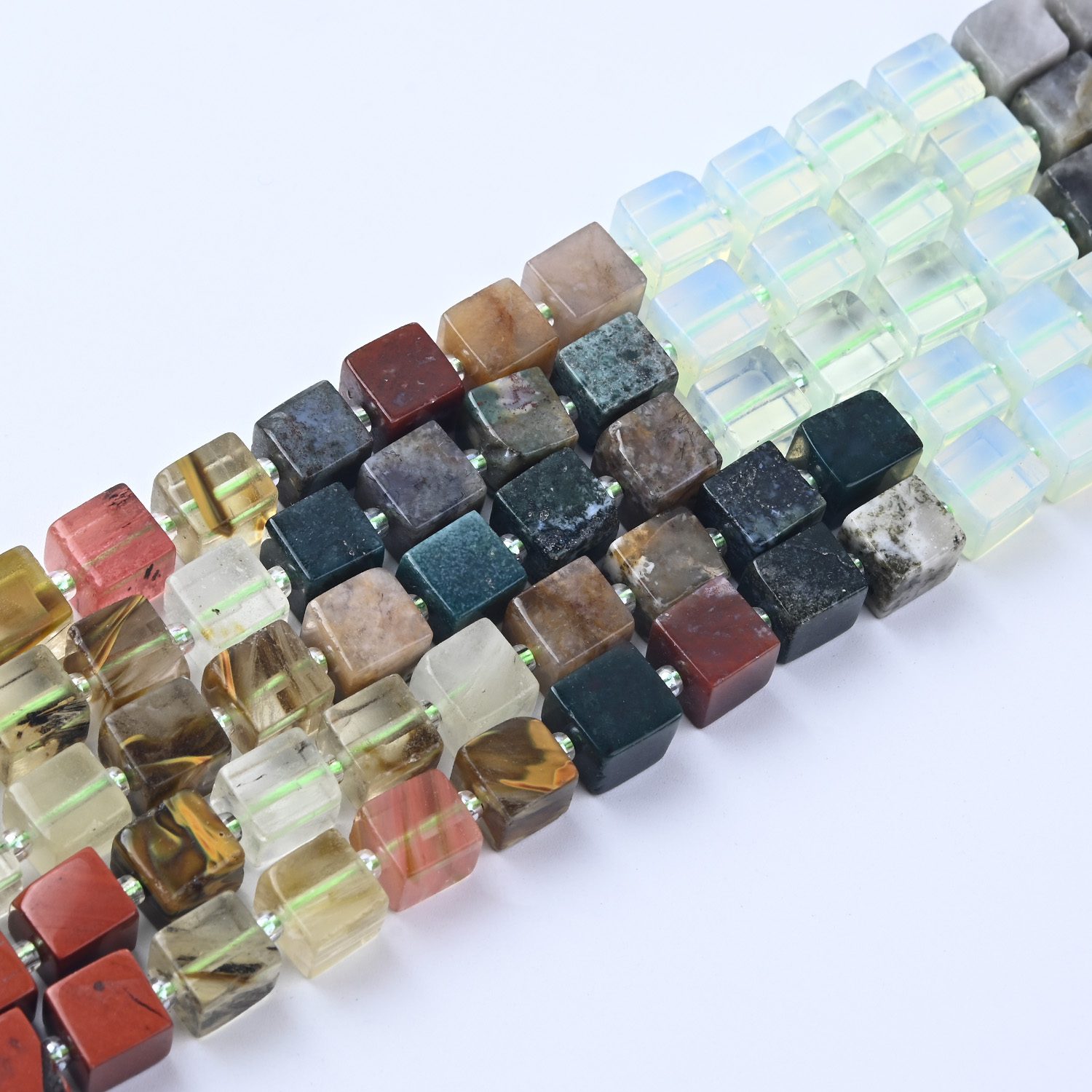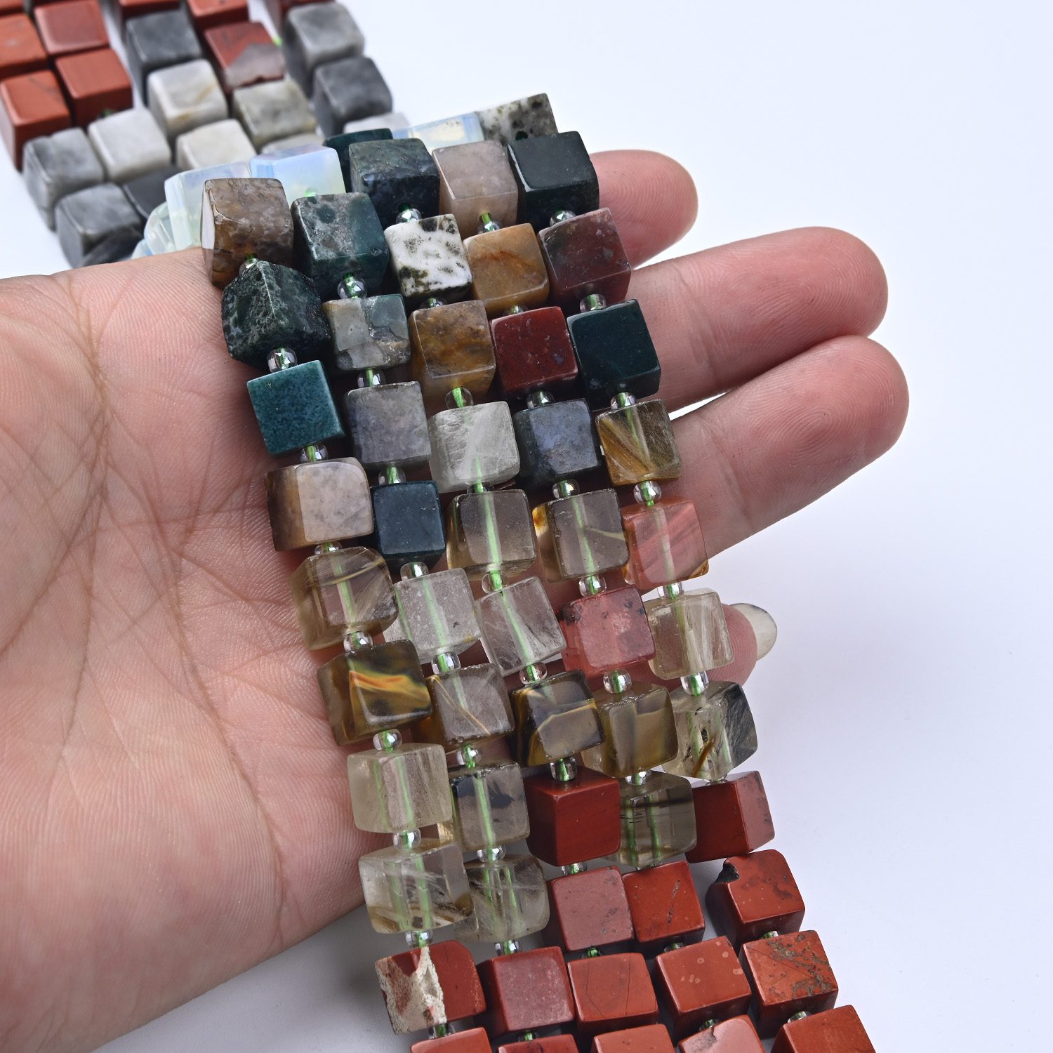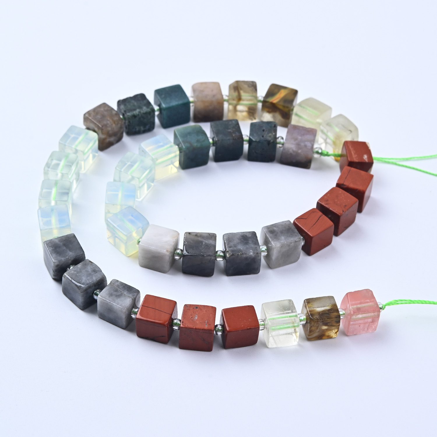 Manifest your intentions from the ground up with this earthy and mystical Crystal Grove bead collection. Each 8x8mm smooth cube combines the motivating energy of Carnelian, the transformative flash of Labradorite, the layered growth of Phantom Quartz, the abundant life of Moss Agate, and the tranquil glow of Opalite — a perfect synergy for grounding dreams into reality.