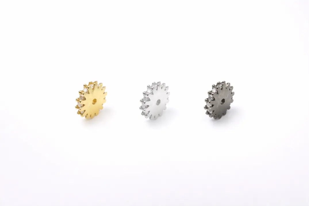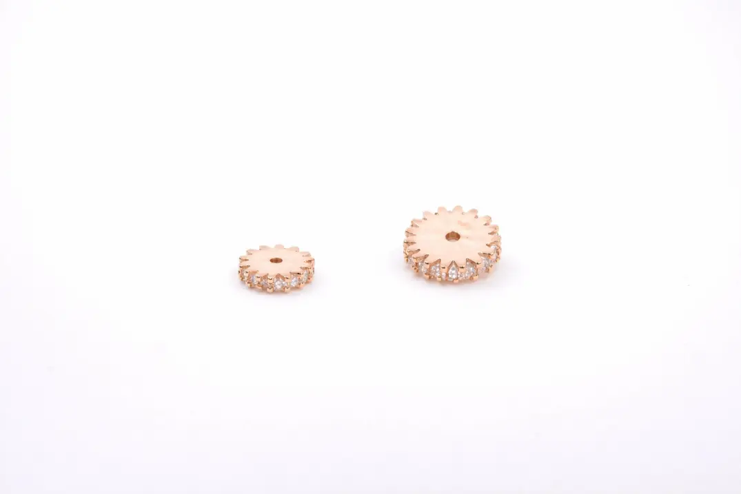 CZ Micro Pave Mechanical Gear Spacer, Coin Spacer Beads, Micro Pave Disc Spacer, Mechanical Jewelry, Gold Spacer Beads.