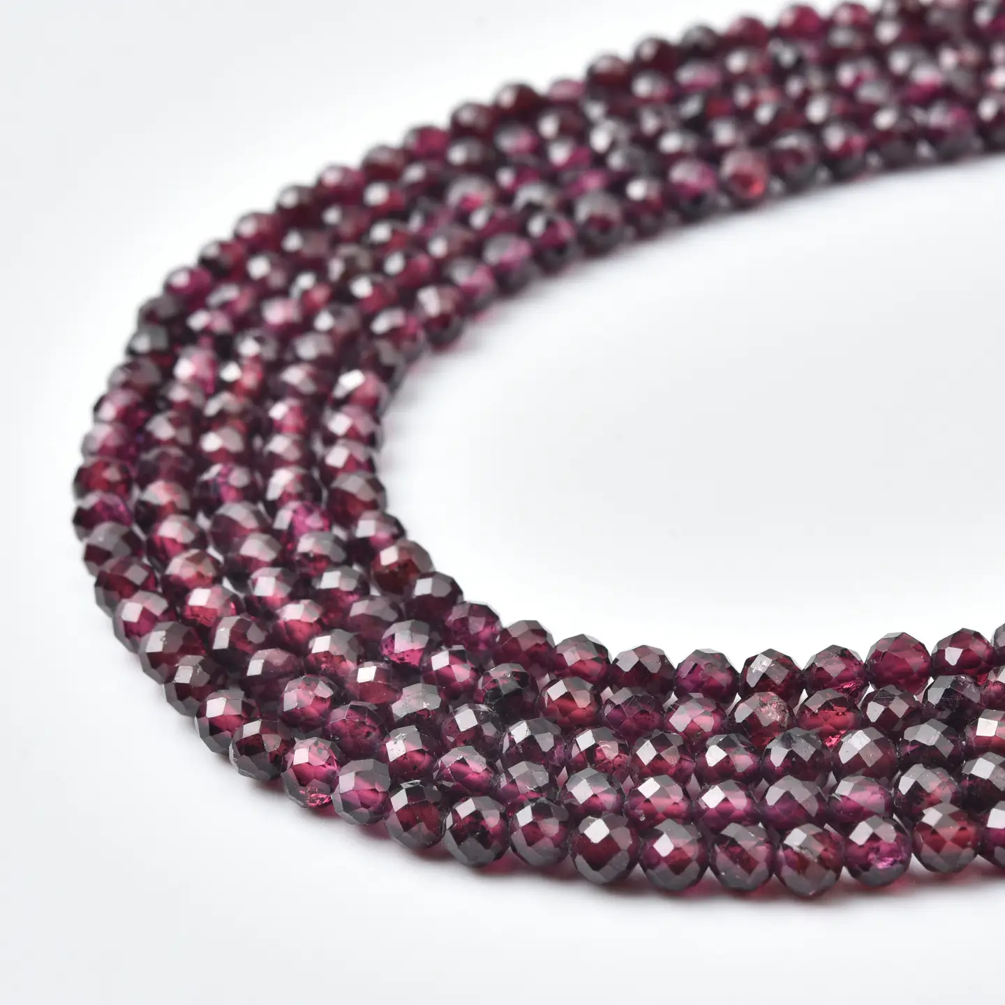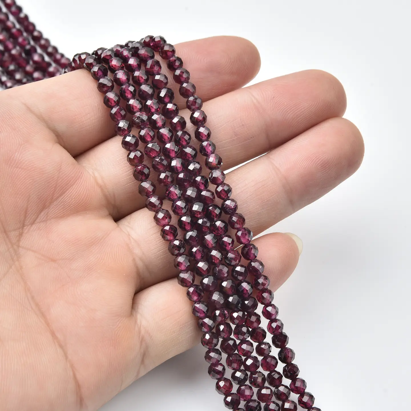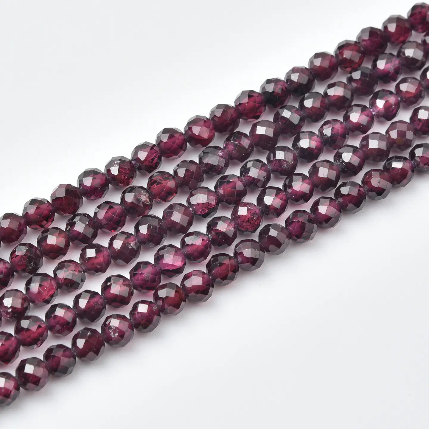 Garnet 4mm Faceted Round Beads Strand, Deep Wine Red Natural Gemstone for Jewelry Making PRP1167
