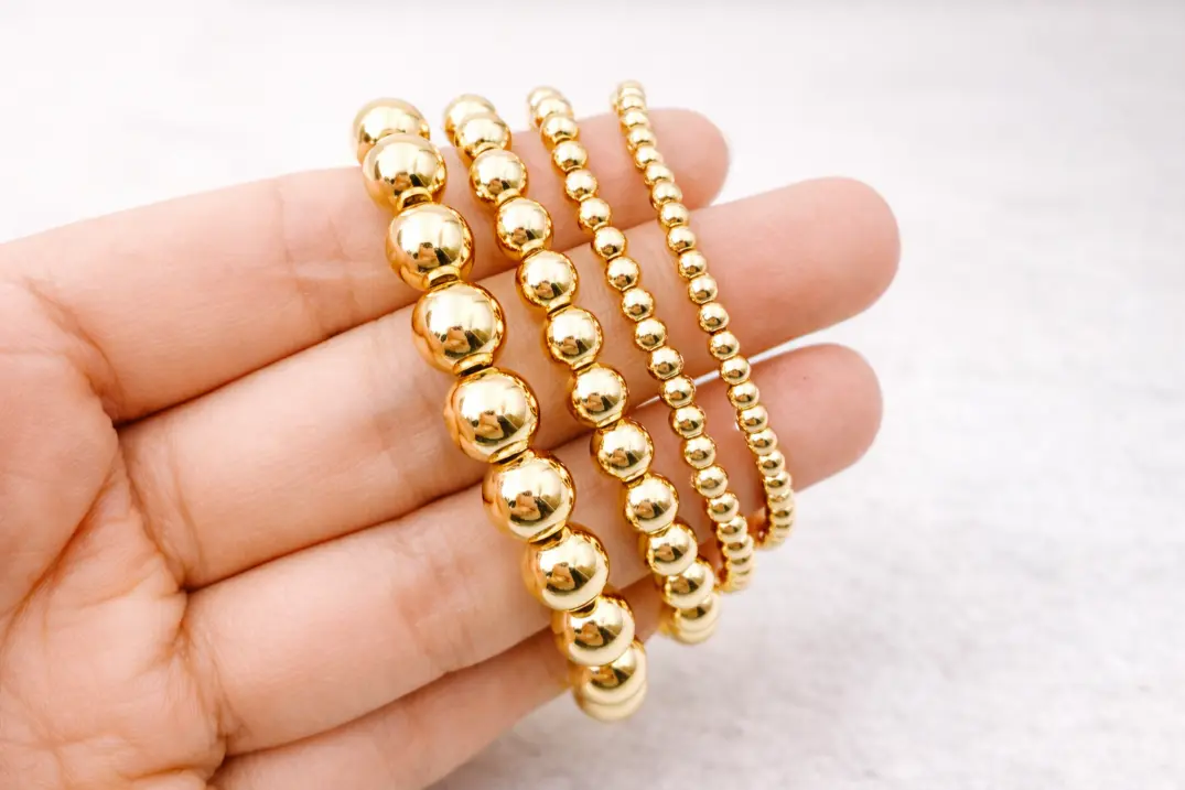 Gold Filled Beaded Stretch Bracelet, Minimalist Ball Bead Elastic Bracelet for Women Stacking Jewelry Gift, Everyday Gold Jewelry, BR009