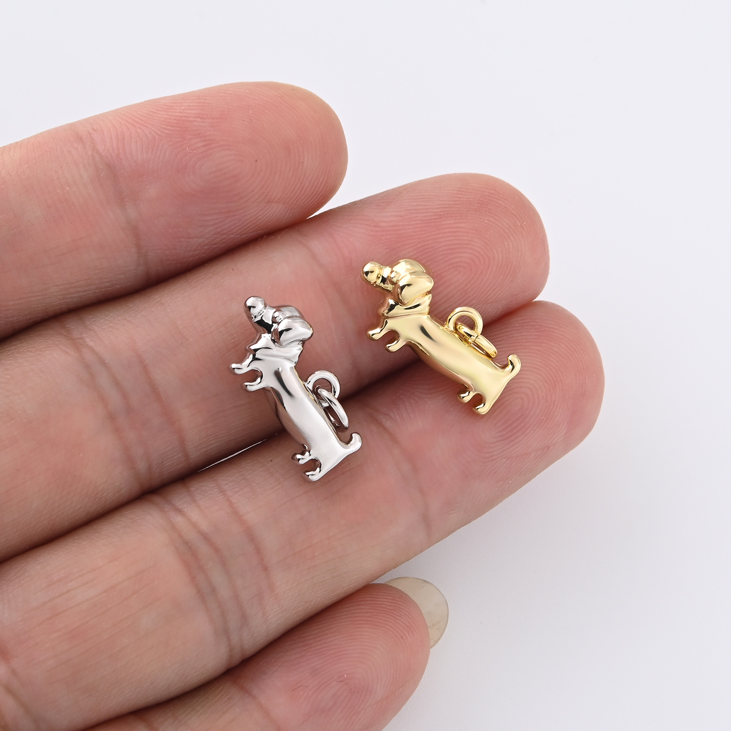 Gold Filled Dachshund Charm, Sausage Dog Pendant for DIY Necklace Bracelet Jewelry Making, Cute Puppy Pet Lover Accessory Gift, CP2355