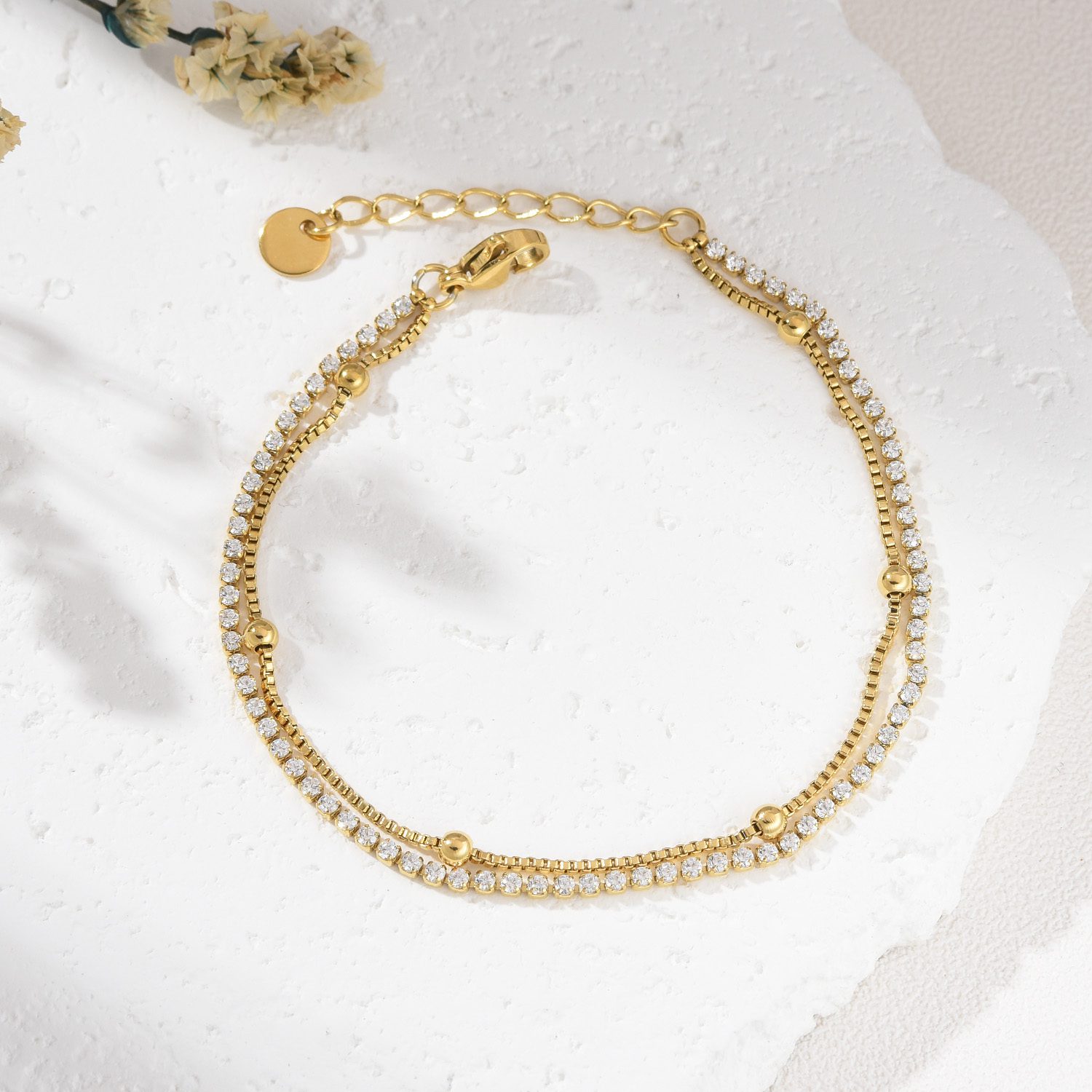 Crafted with a high-quality stainless steel base, this piece is coated with a thick layer of gold-filled material. Unlike standard gold plating, gold-filled jewelry contains significantly more gold, making it tarnish-resistant, waterproof, and hypoallergenic. It’s ideal for everyday wear and designed to last for years with proper care.