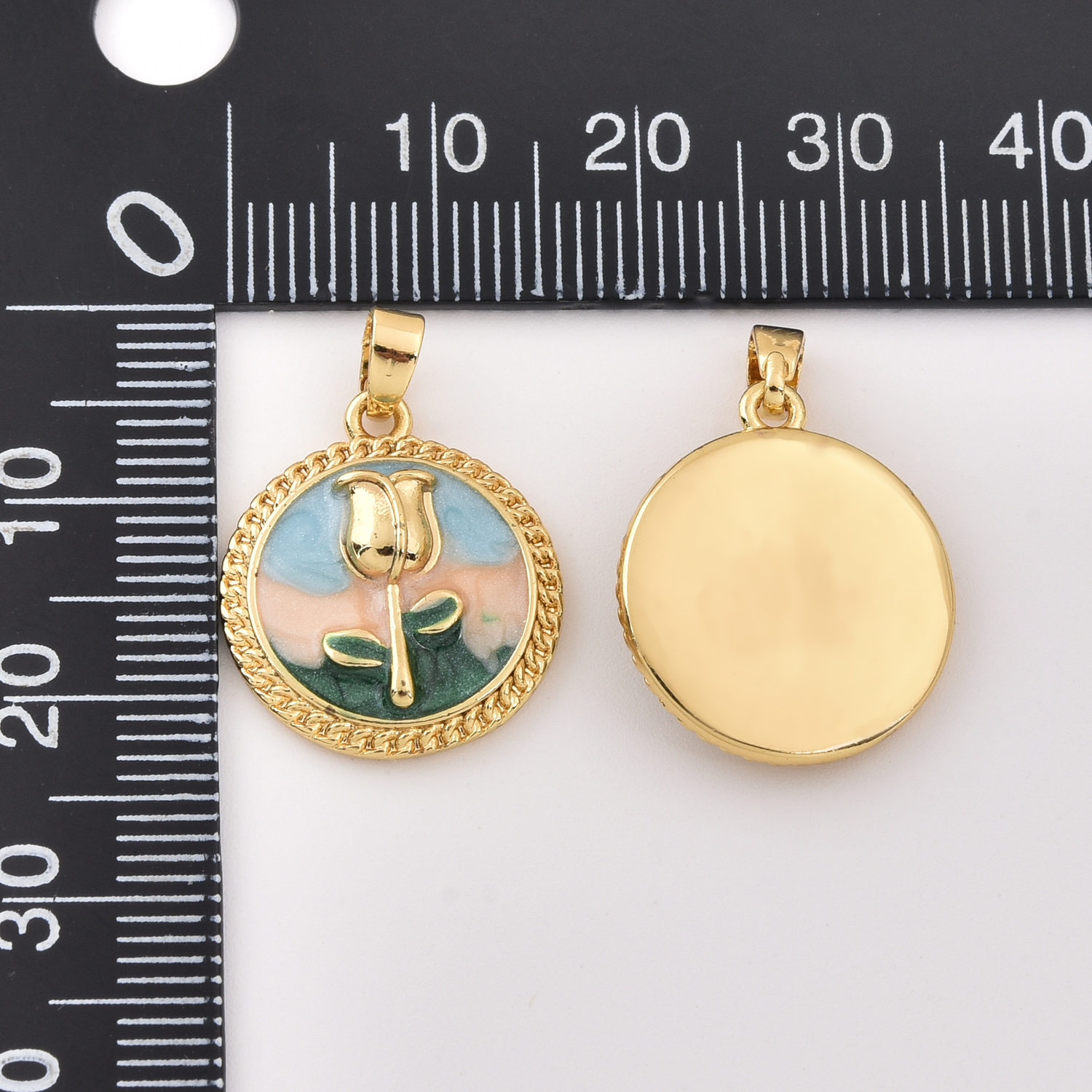 Material: Brass Based with 18K Gold Filled, Enamel