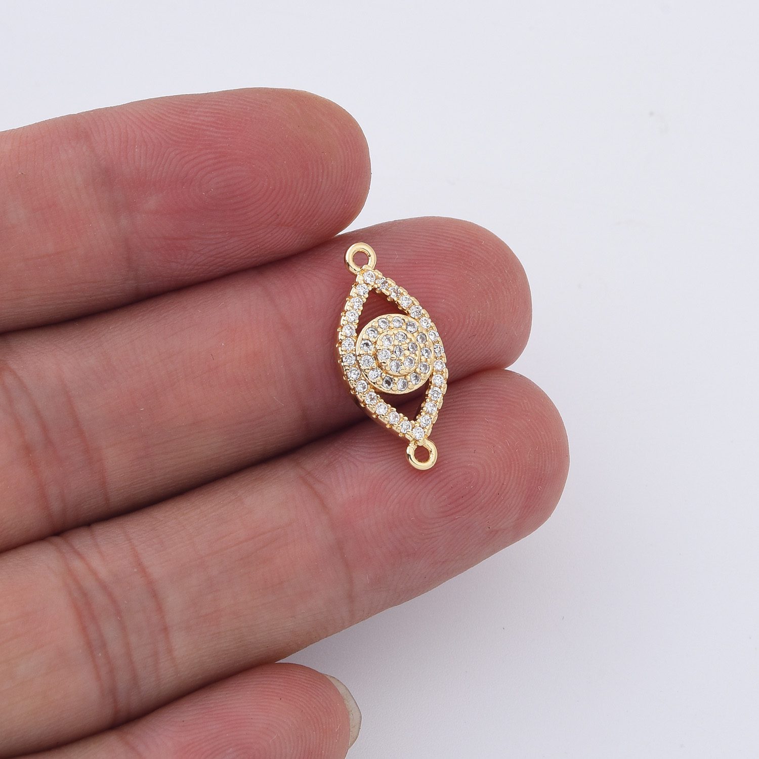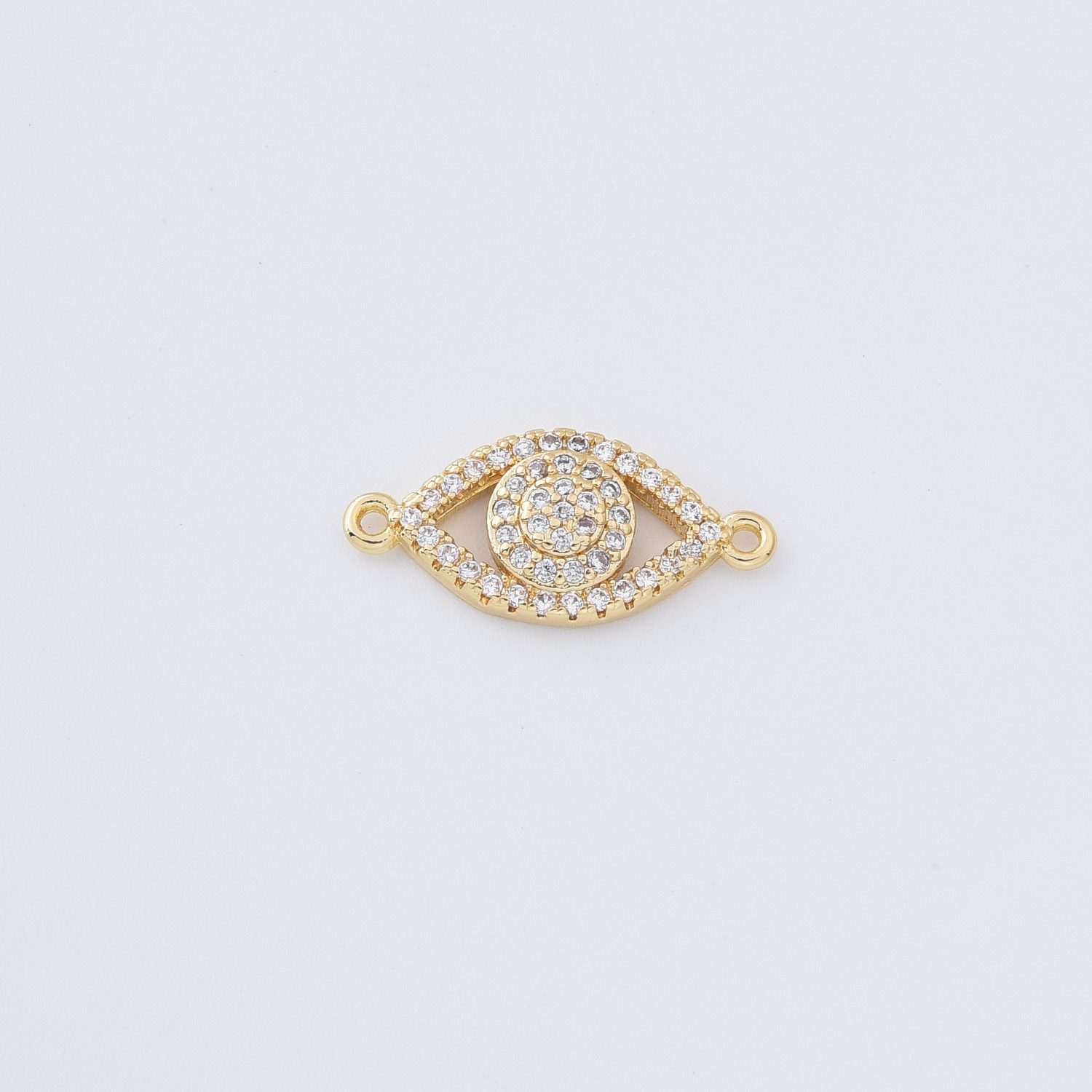 Gold Filled Evil Eye Connector Charm, Micro Pave CZ Gold Pendant for DIY Bracelet Necklace Anklet Jewelry Making, Protection Amulet, CN365