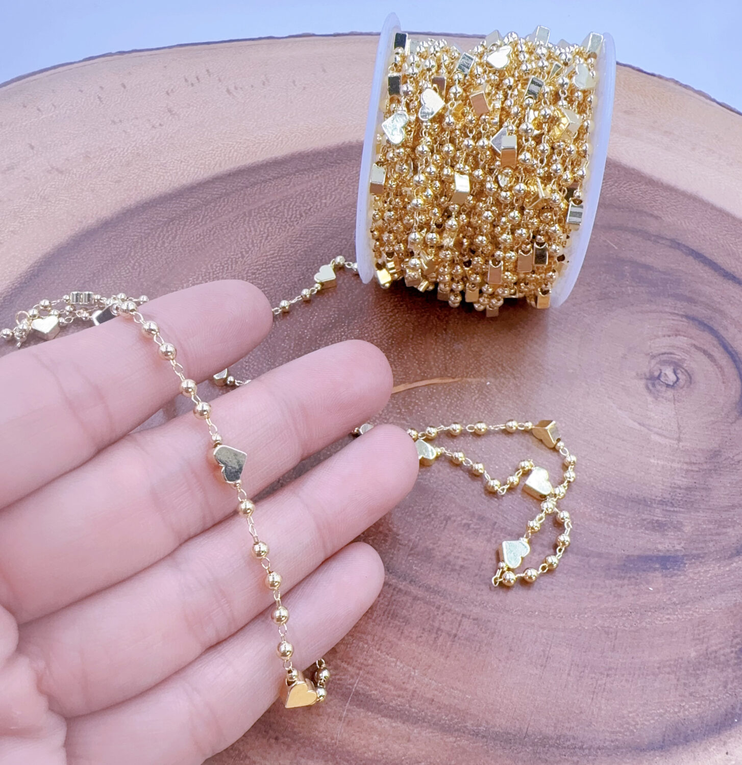 Size: heart 6mm, gold bead 3mm