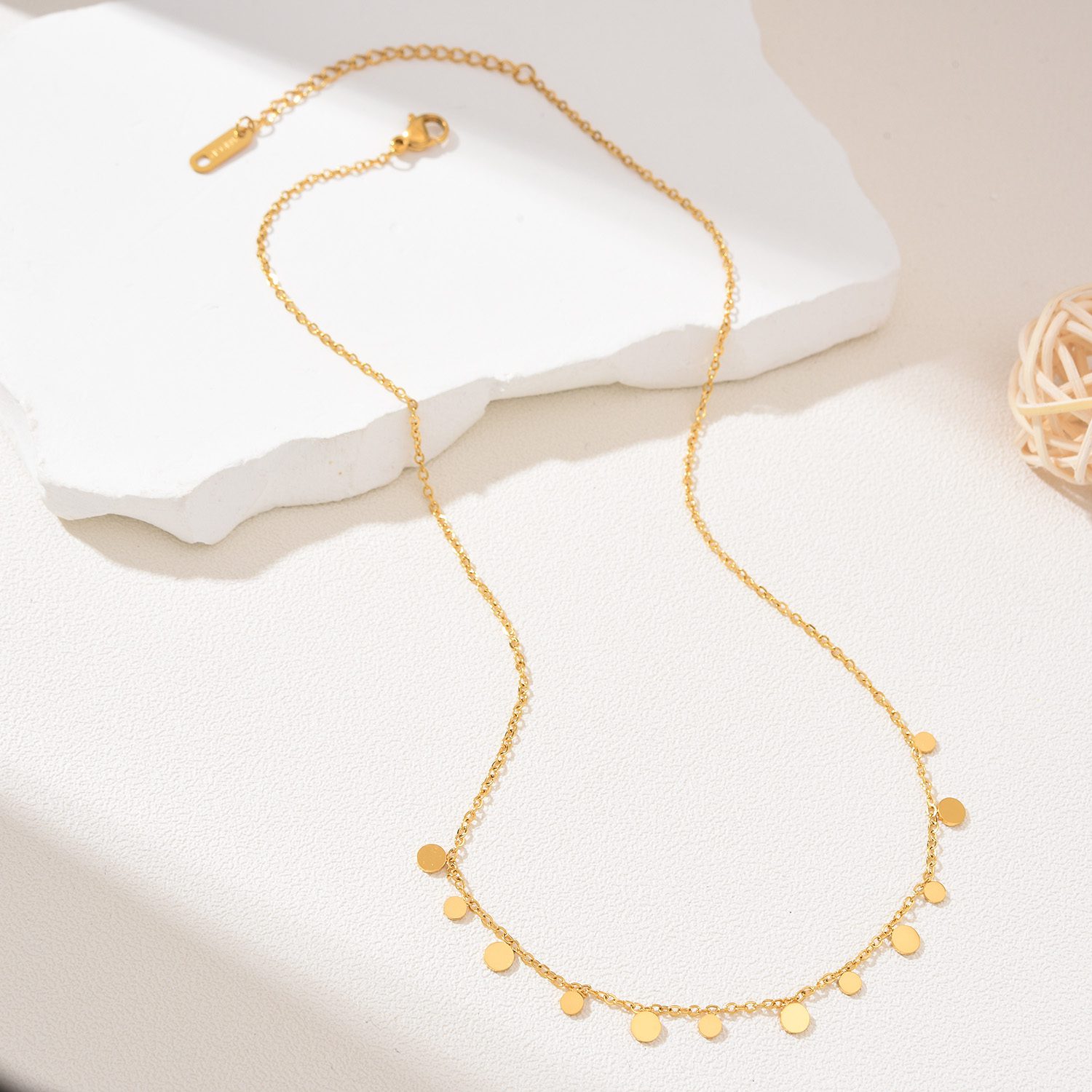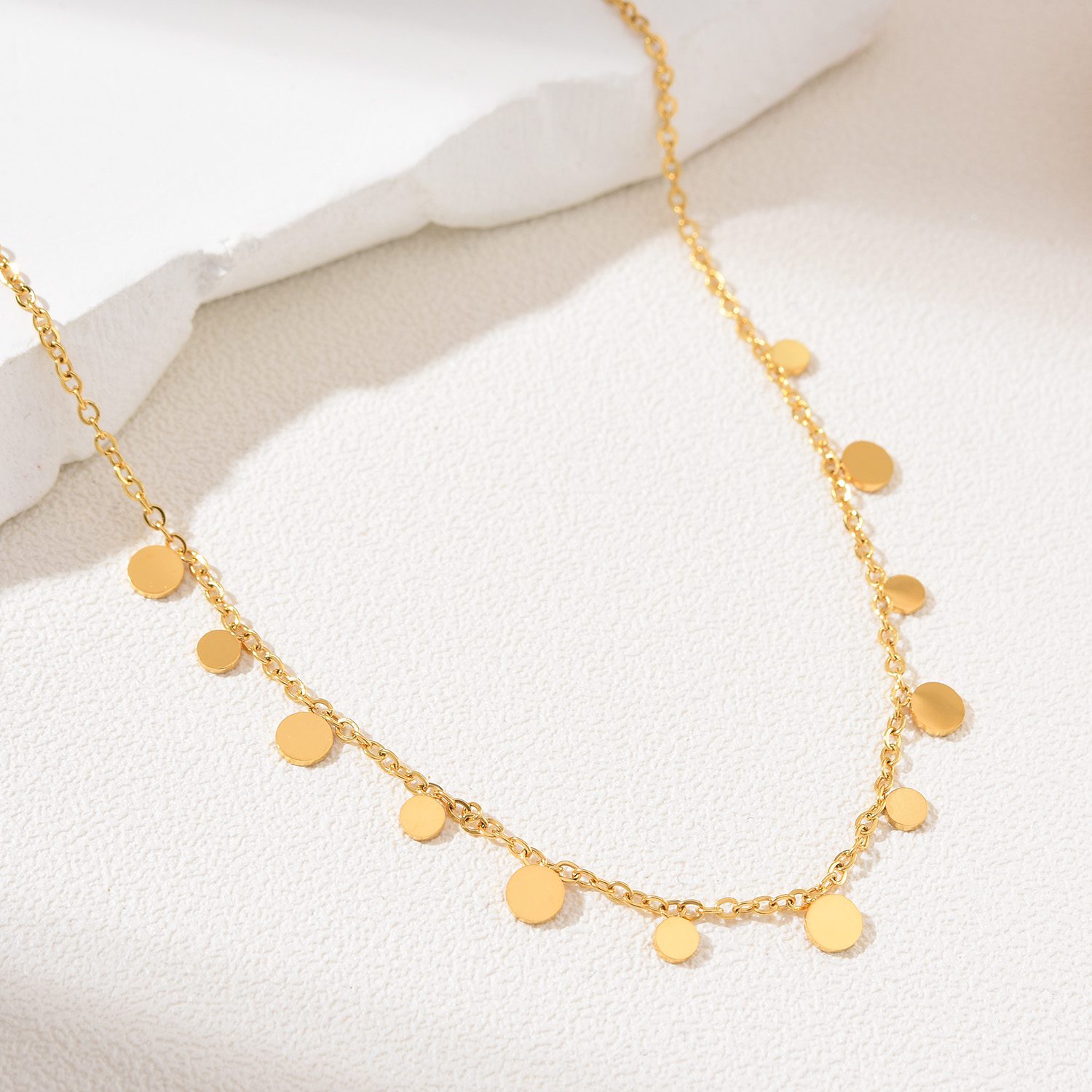 Gold Filled Multi Disc Charm Necklace, Dainty Minimalist Chain, Stainless Steel Jewelry, Elegant Layering Gift for Her, Everyday, SNL029