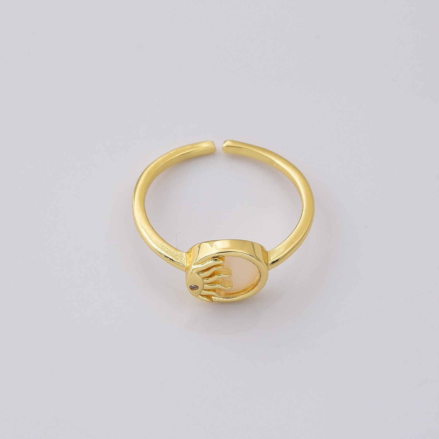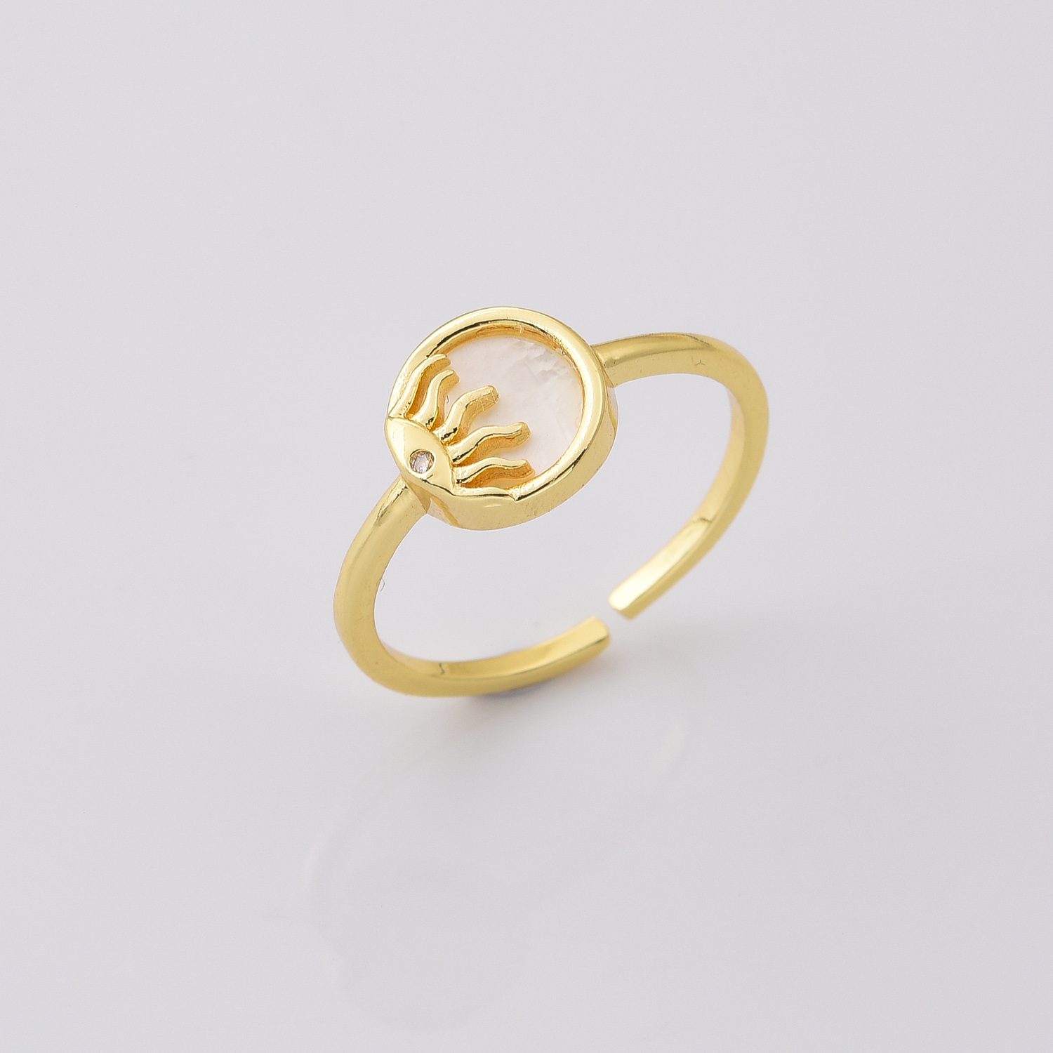 Gold Filled Sun Ring, Mother of Pearl Open Adjustable Ring for Women, Celestial Jewelry, DIY Gift Idea, Minimalist Gift for Her, RG229