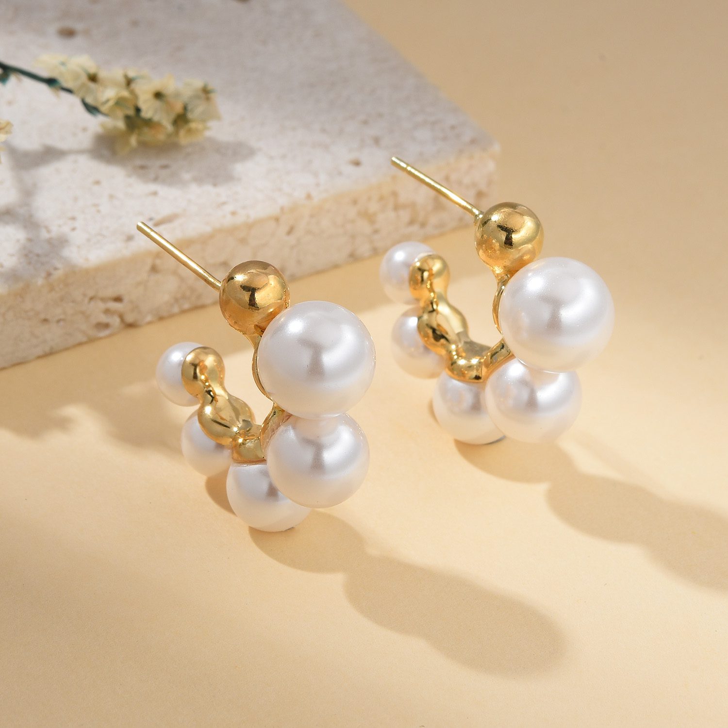 Material: 925 Sterling silver post, Gold plated brass, Pearl