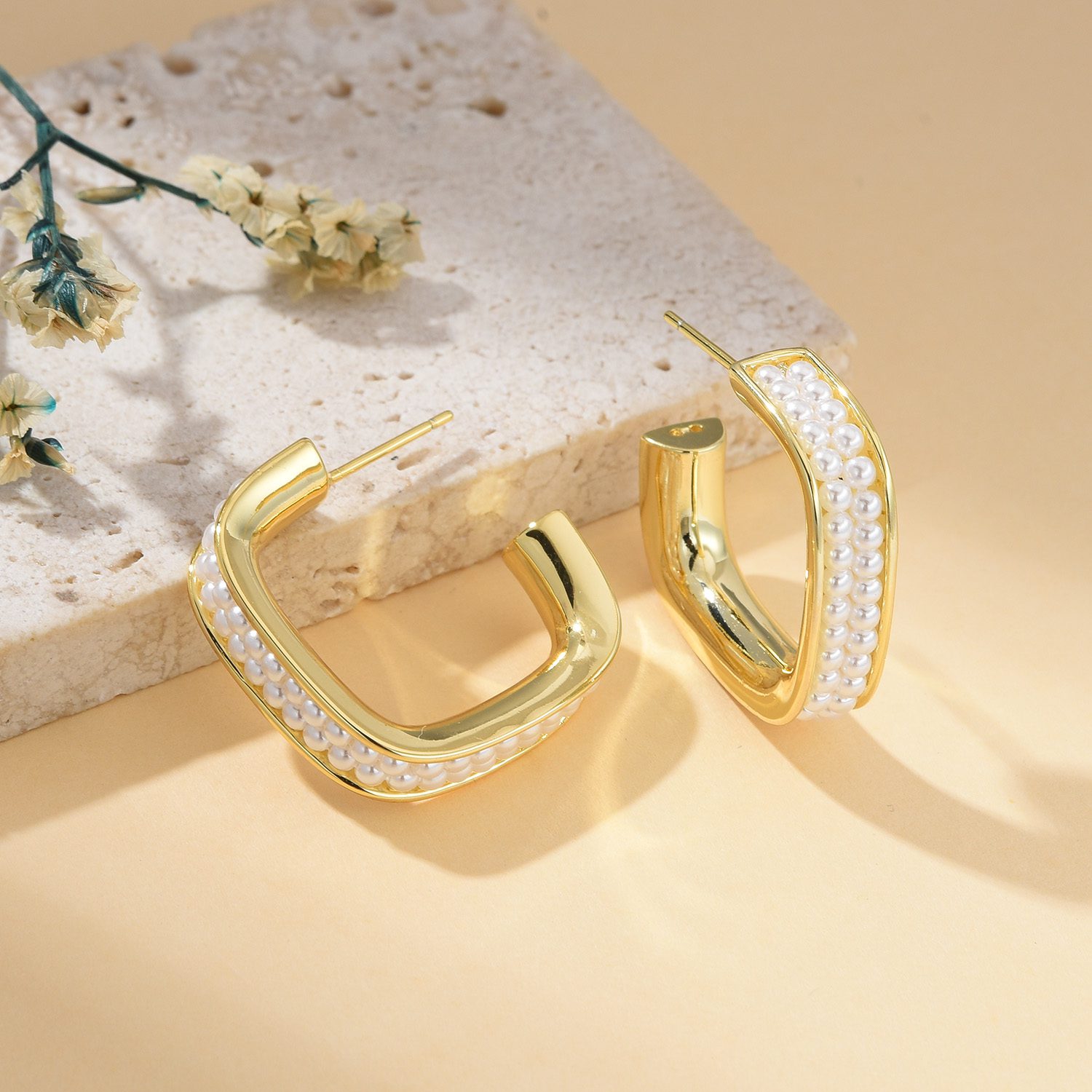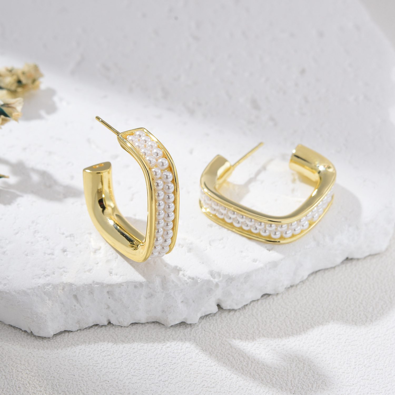 Material: 925 Sterling silver post, Gold plated brass, Pearl