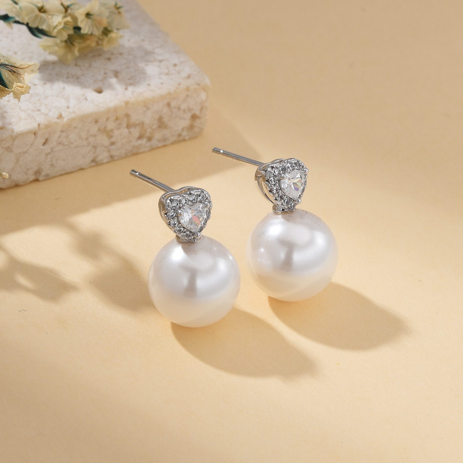Material: 925 Sterling silver post, Brass, Cubic Zirconia, Pearl