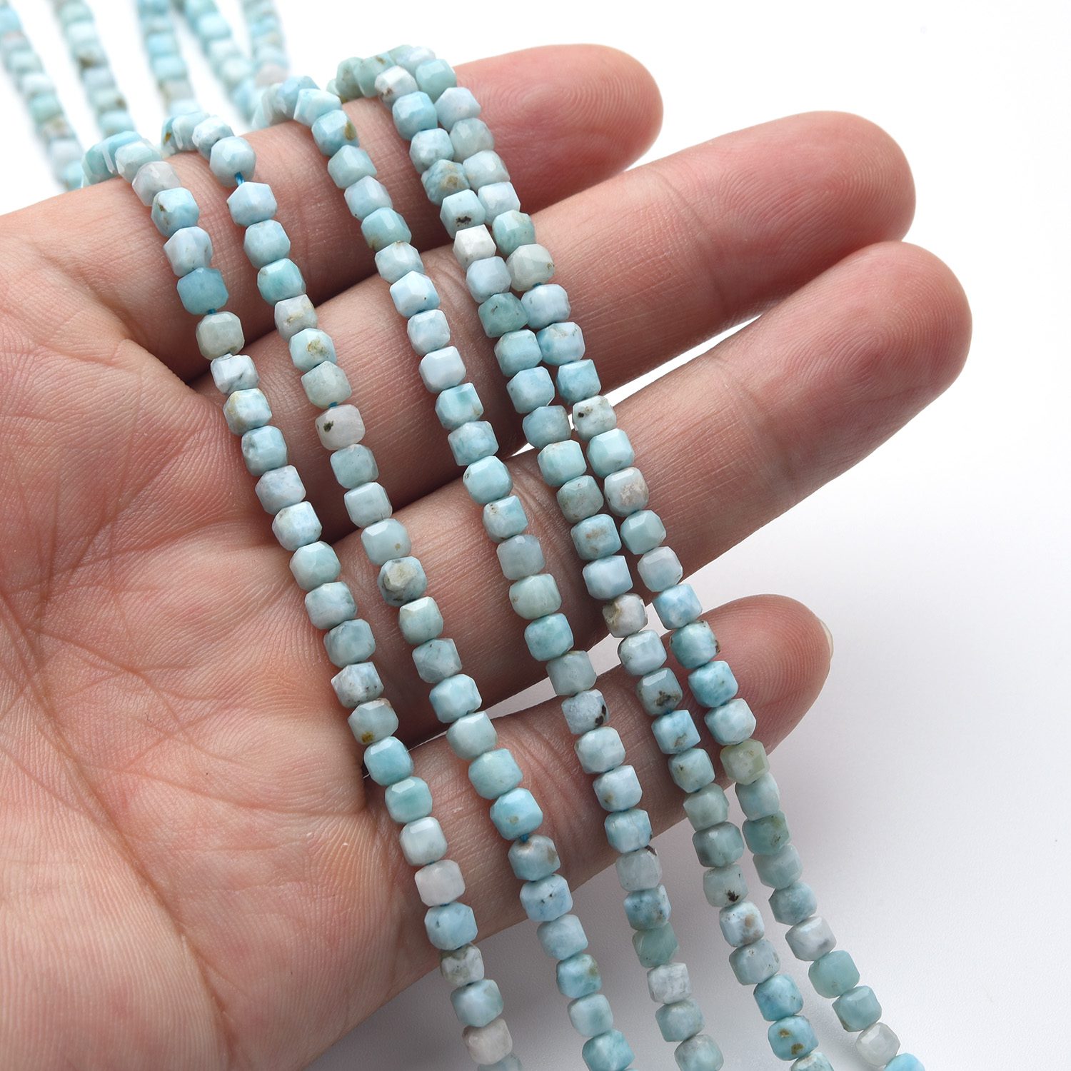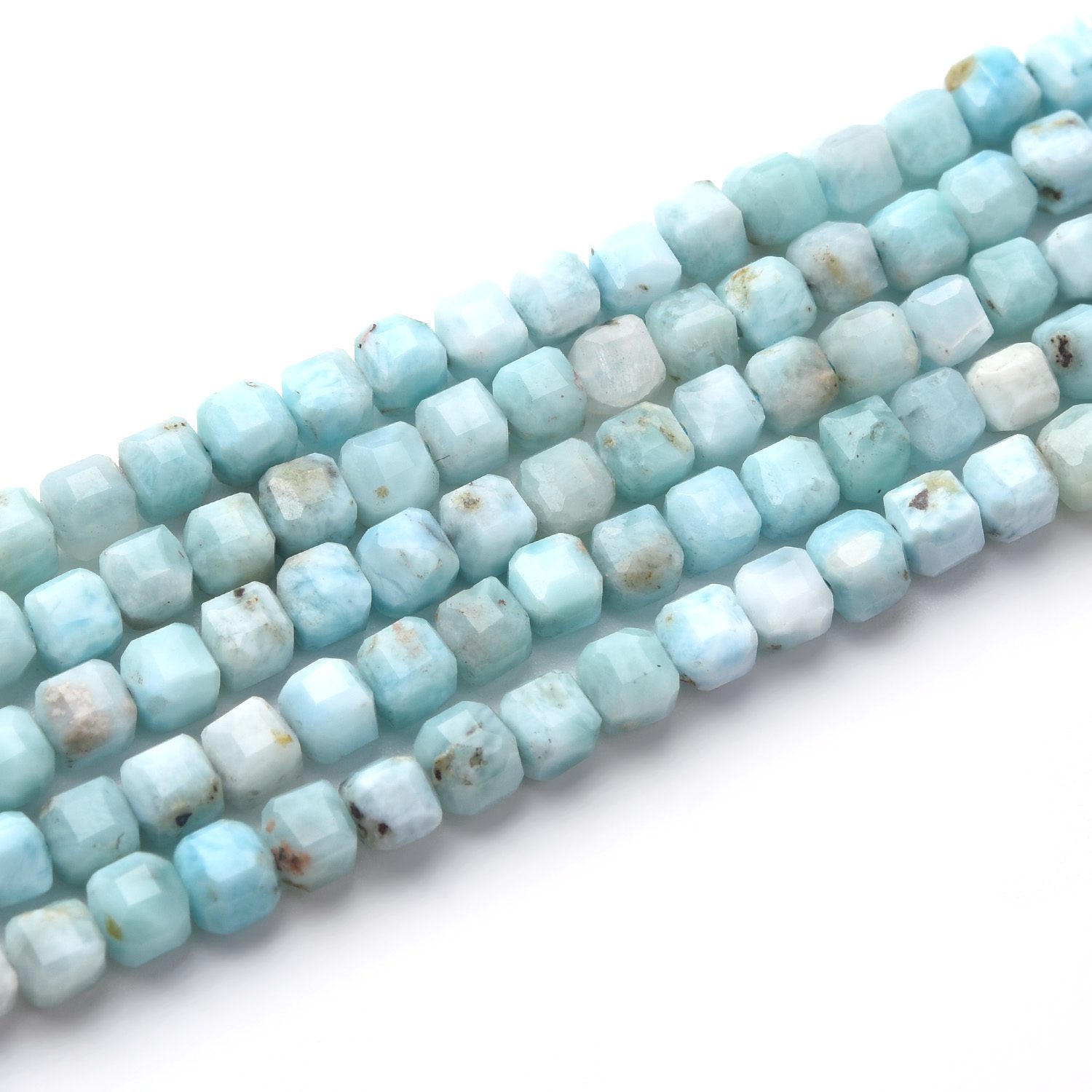 Bring calming ocean energy to your designs with these Natural Larimar Faceted Cube Cut Beads. Each bead is expertly cut and polished, showcasing Larimar’s signature sky-blue tones and gentle white marbling — a gemstone cherished for its serene and uplifting beauty.