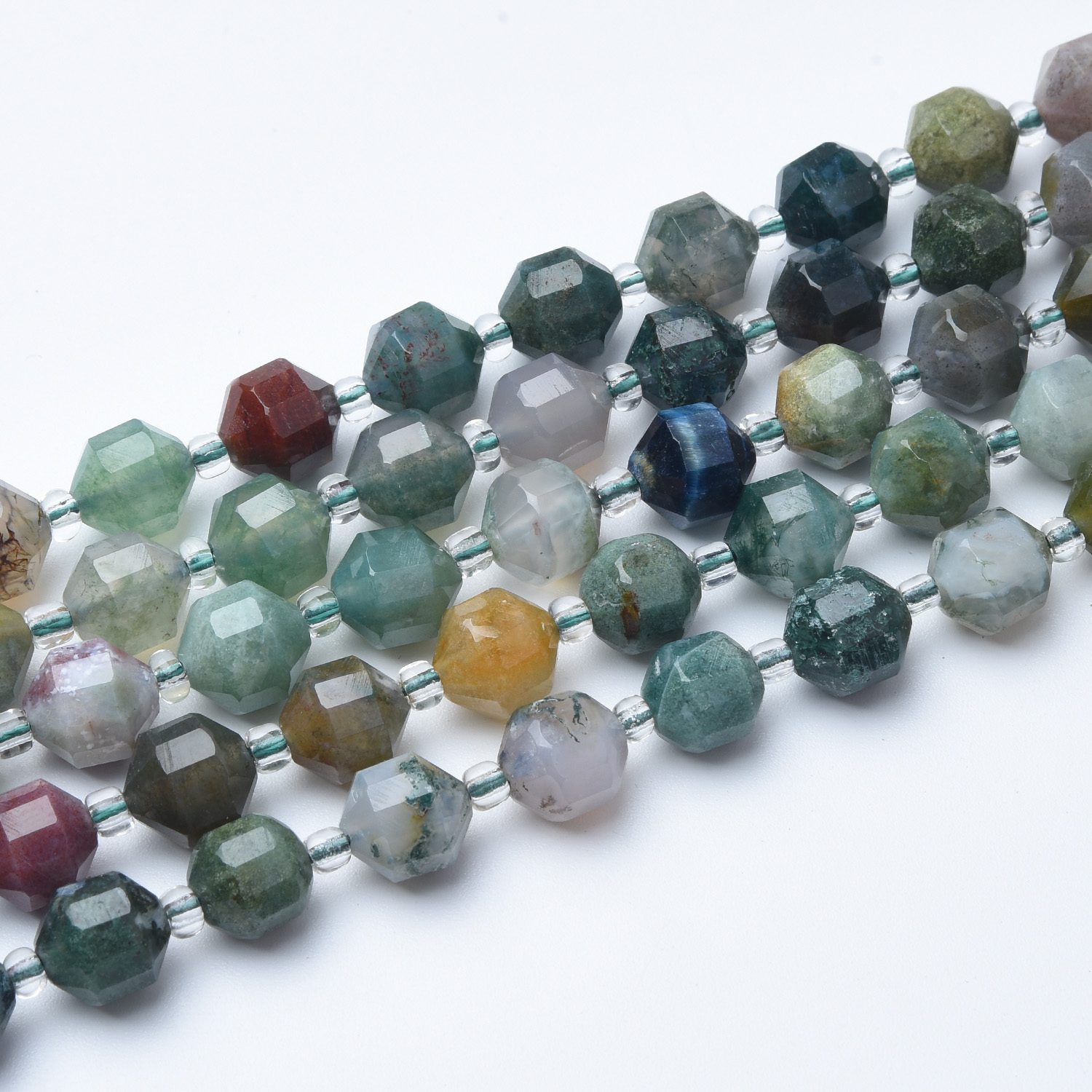 These beads display a mix of earthy browns, tans, and soft grays with unique natural patterns. The faceted prism cut enhances their depth and shimmer, making them perfect for bracelets, necklaces, earrings, or mixed gemstone designs.