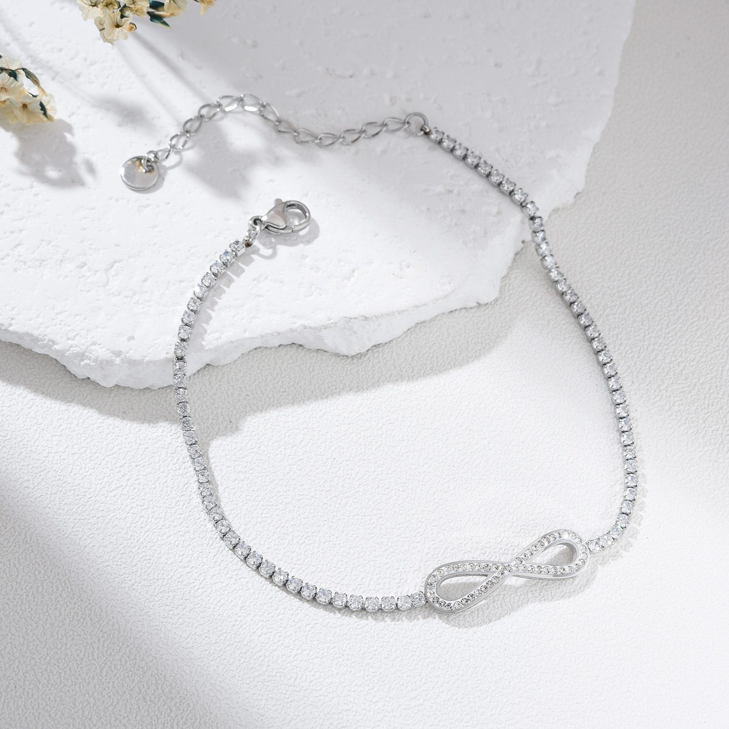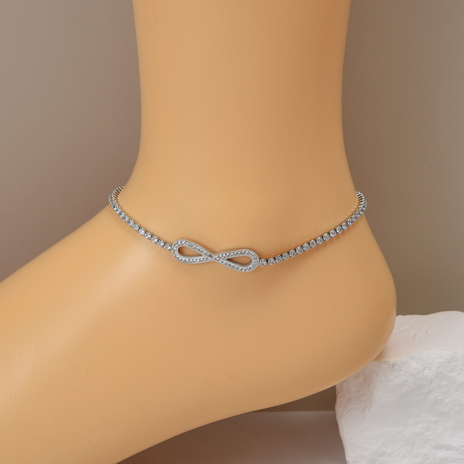 Infinity Tennis Anklet in Silver with Sparkly CZ Crystals, Adjustable Dainty Foot Jewelry for Women, Elegant Symbolic Gift for Her, AL020