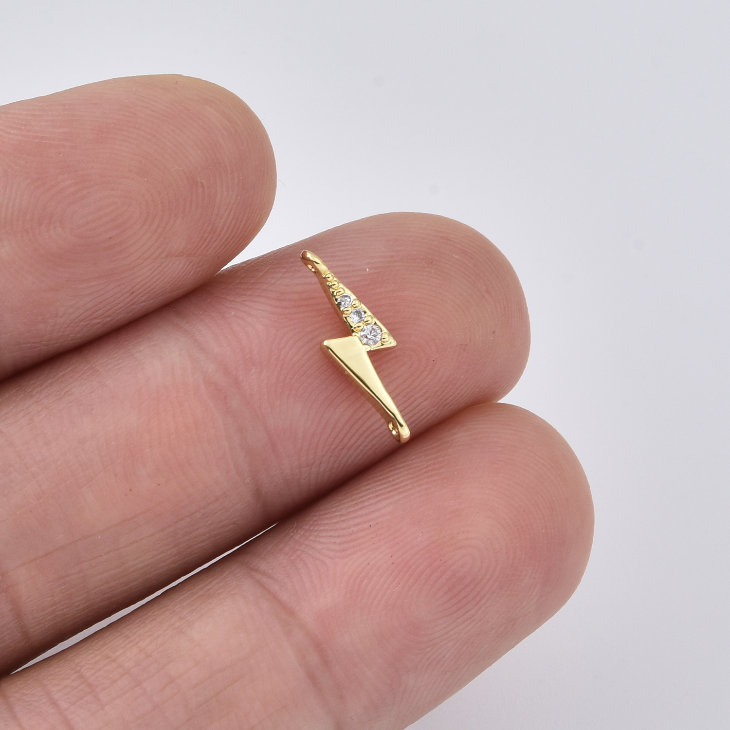 Lightning Bolt Connector Charm, Gold Filled Crystal Accent Link for DIY Necklace Bracelet Jewelry Making, Minimalist Thunder Charm, CN504