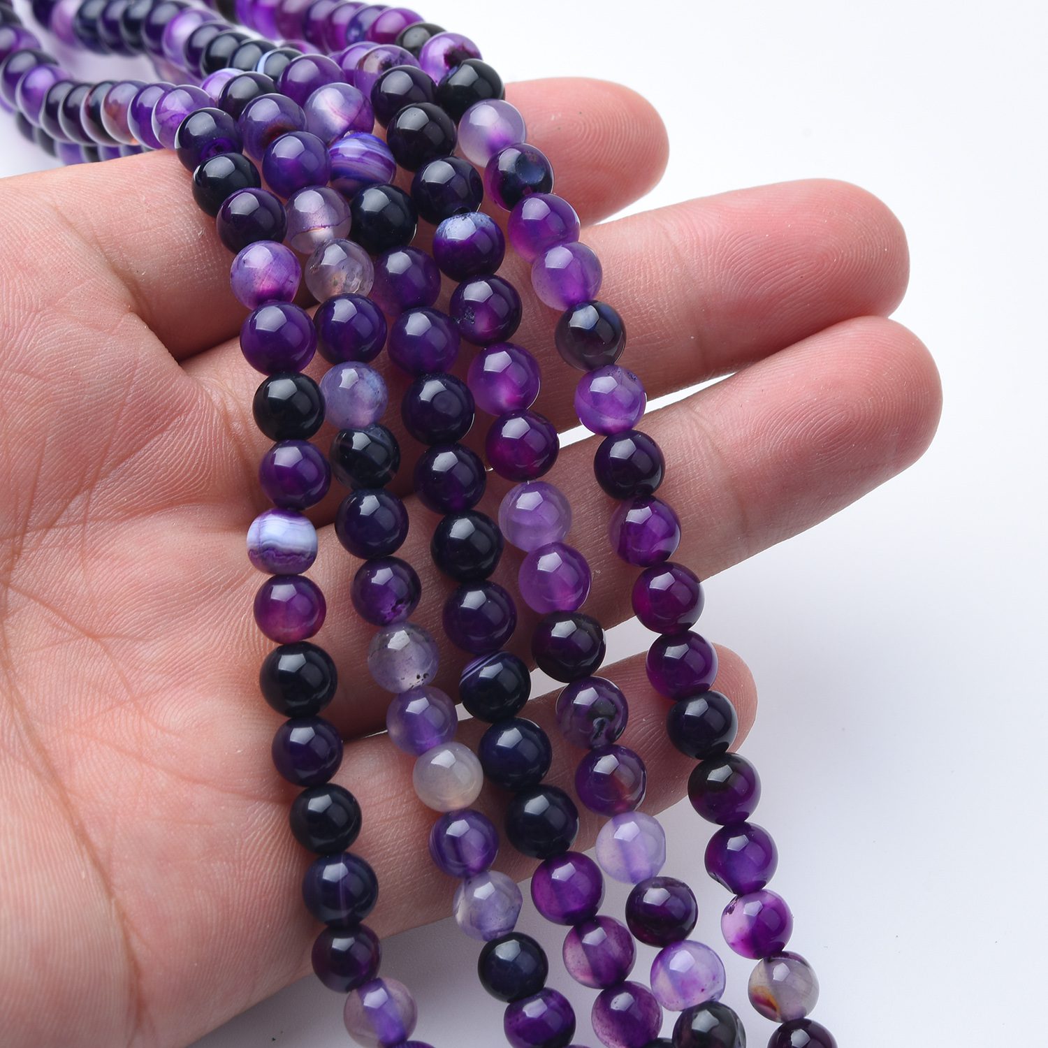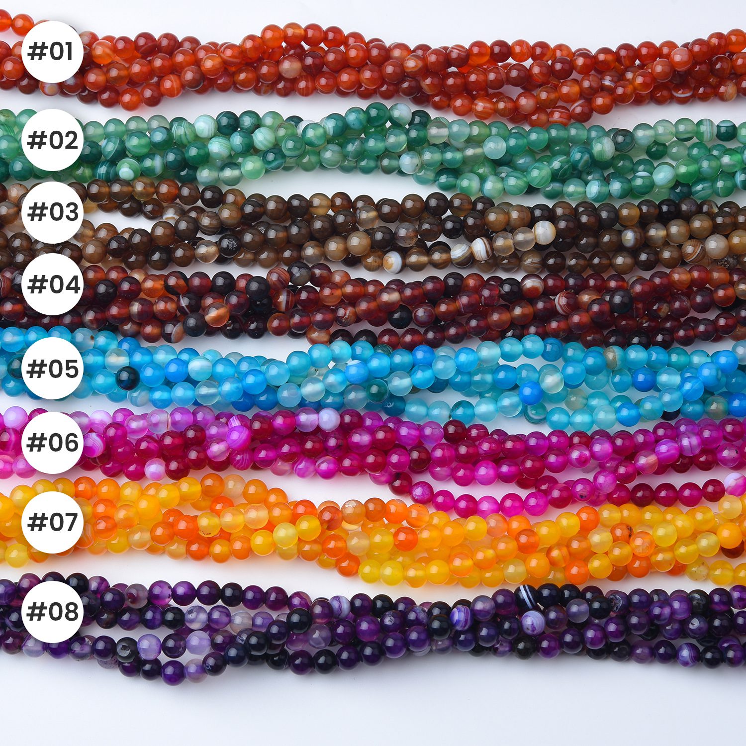 These are natural agate stones — color, pattern, and exact bead count will vary slightly strand-to-strand. These natural variations are part of what makes each strand unique.
