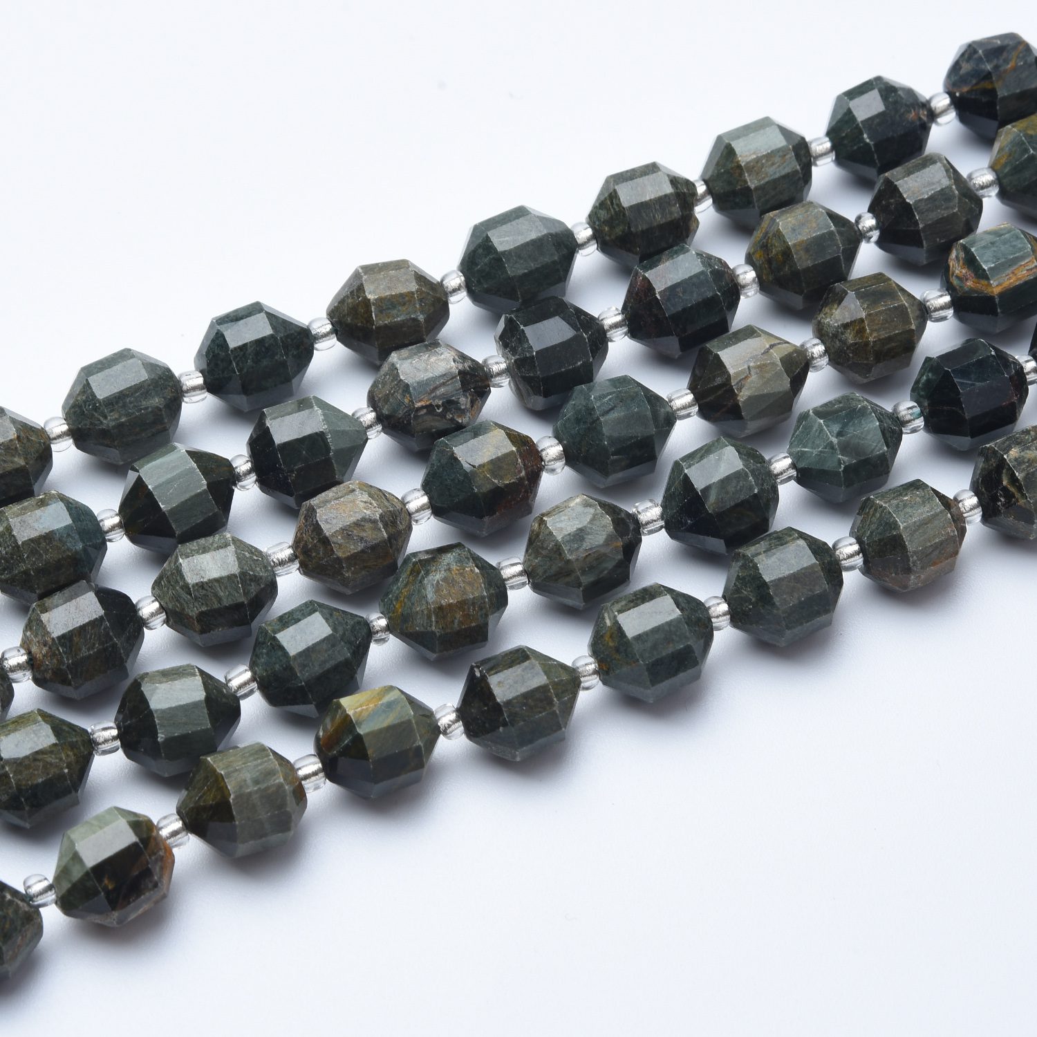 Each bead displays a natural mix of earthy grays, blacks, and whites, creating a timeless, organic look. The faceted prism cut reflects light beautifully, making these beads perfect for necklaces, bracelets, earrings, or combining with other gemstones for striking contrasts.