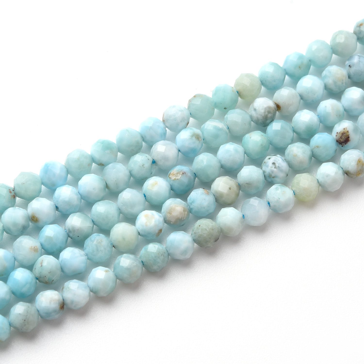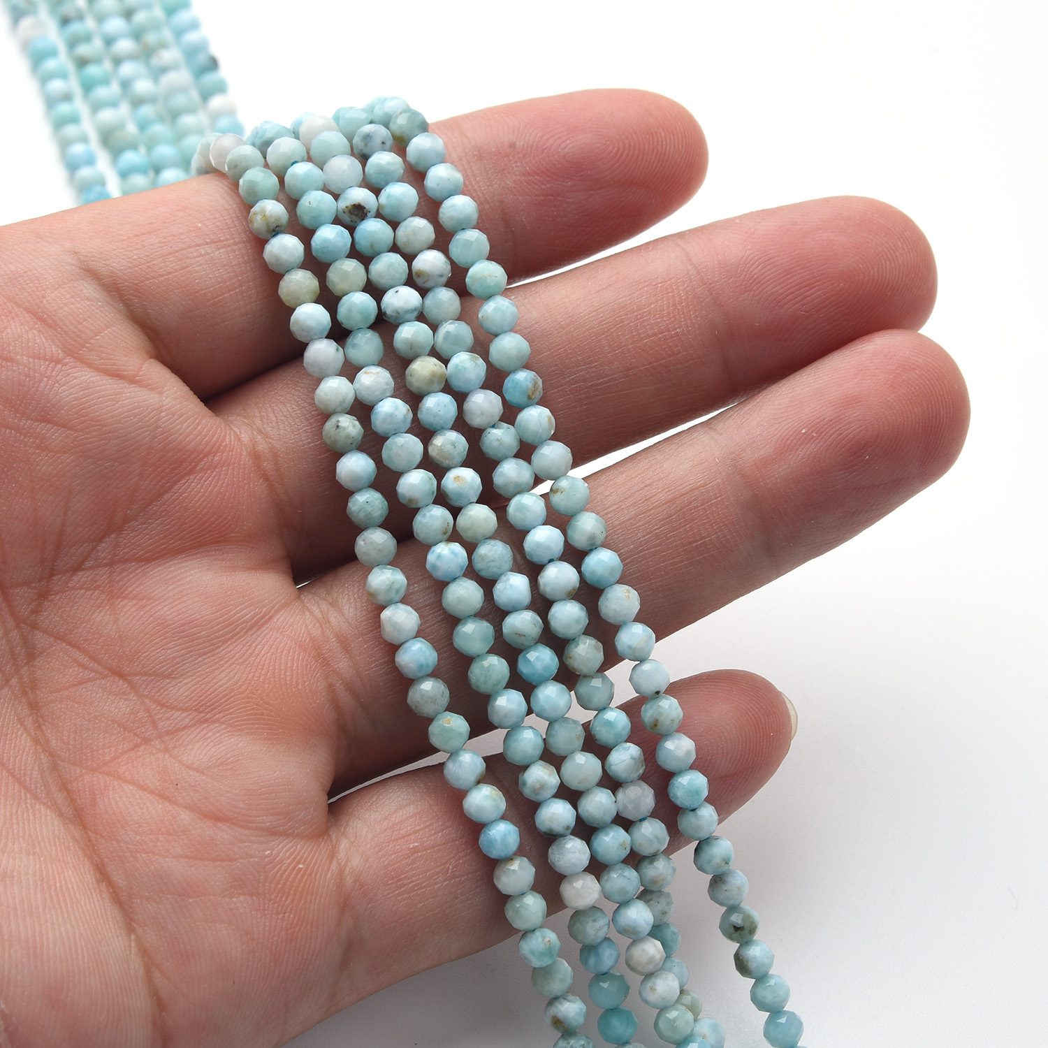 Bring tranquil ocean vibes and natural beauty to your creations with these High Quality Larimar Gemstone Beads. Each 3mm bead is precisely faceted to shimmer softly, highlighting Larimar’s signature sky-blue color and cloud-like patterns — a gemstone prized for peace and relaxation.
