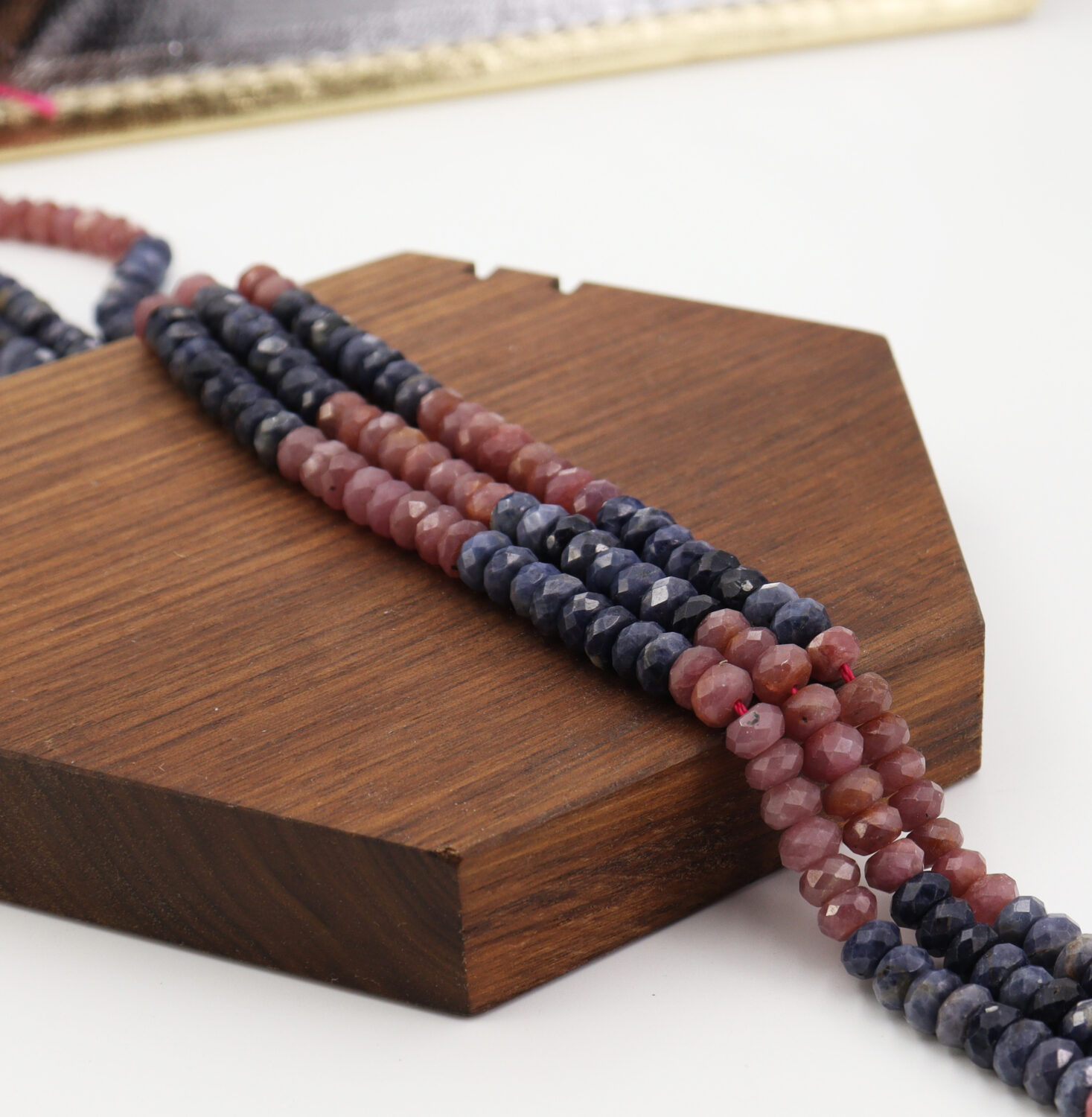 Bring timeless luxury and brilliance to your creations with this High Quality Ruby & Sapphire Gemstone Beads Strand. Each bead is round and faceted, expertly cut to enhance sparkle and depth, blending rich red and blue tones that embody elegance and power.