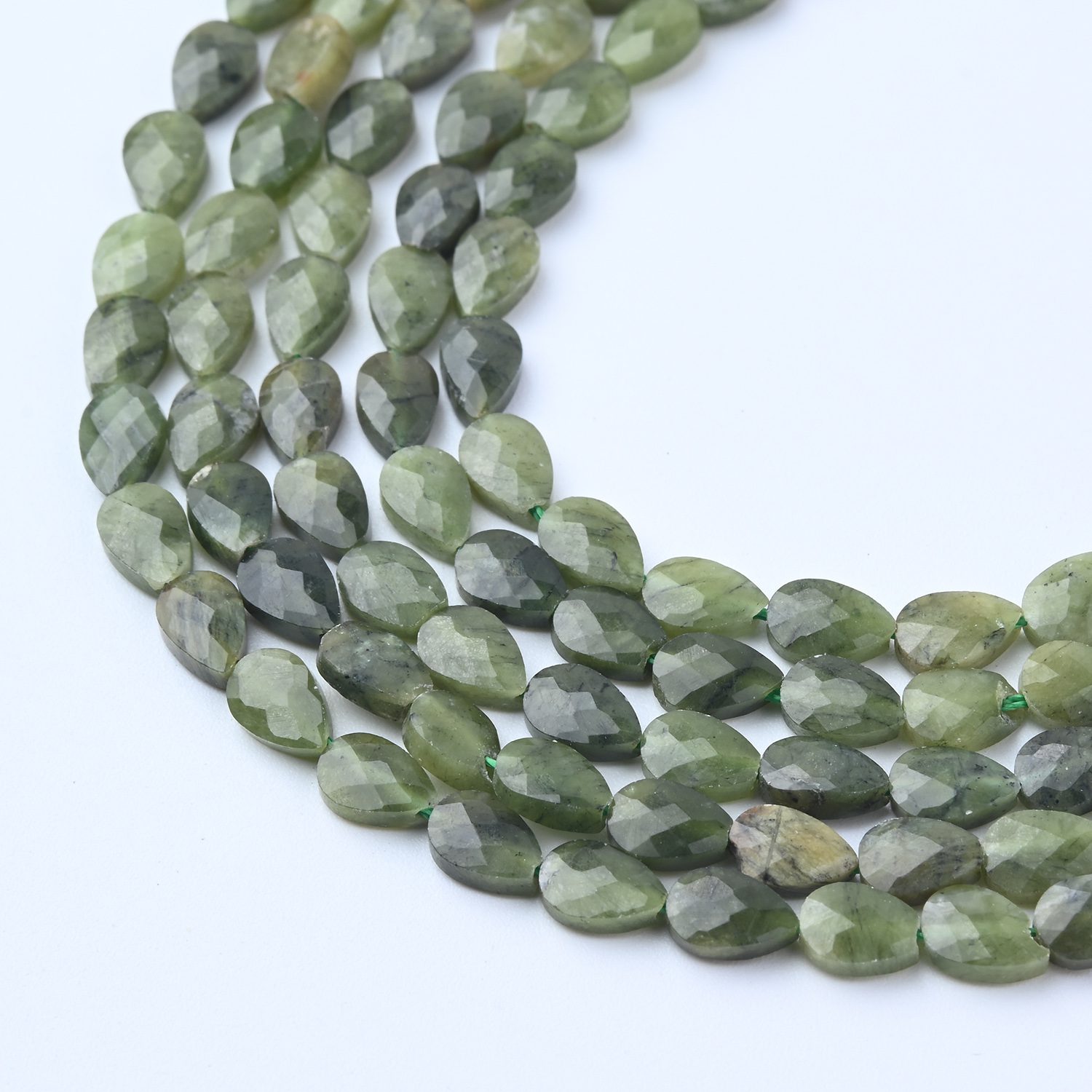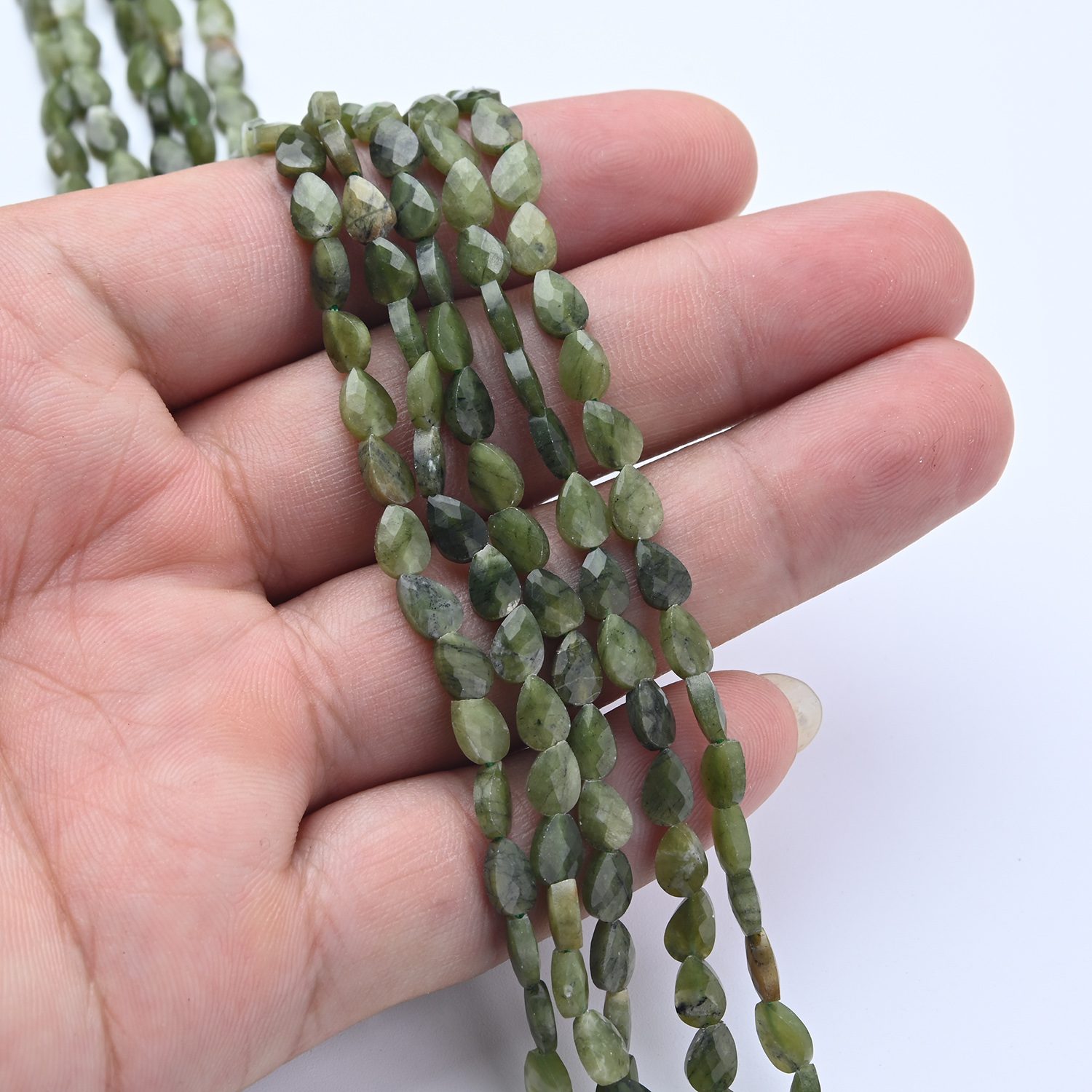 Bring the renewing energy of lush forests and ancient wisdom to your creations with these Natural Serpentine Loose Teardrop Leaf Shape Faceted Gemstone Beads. Each 4x6mm bead is precisely faceted to gleam with subtle luster, unveiling Serpentine’s iconic apple-green tones and serpentine patterns — a stone revered for transformation, clarity, and emotional balance. ✨
