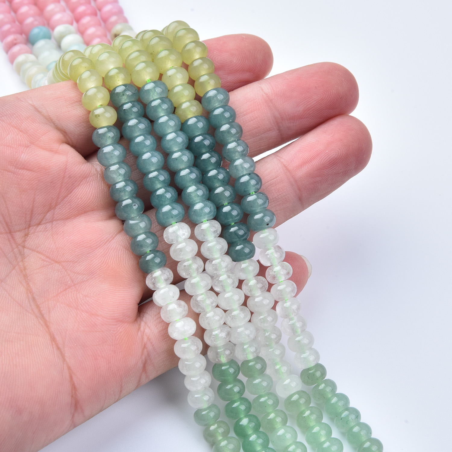 Bring soft, dreamy color and meaningful energy to your jewelry creations with this 6mm Smooth Rondelle Gemstone Bead Strand Mix (GRN741). This full 15.5″ strand features a delicate pastel palette—blush pinks, seafoam greens, airy blues, creamy whites, and gentle yellow-green tones—perfect for feminine, minimalist, and spring-inspired designs. ✨