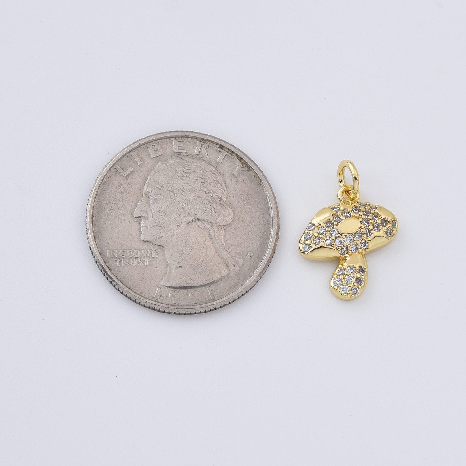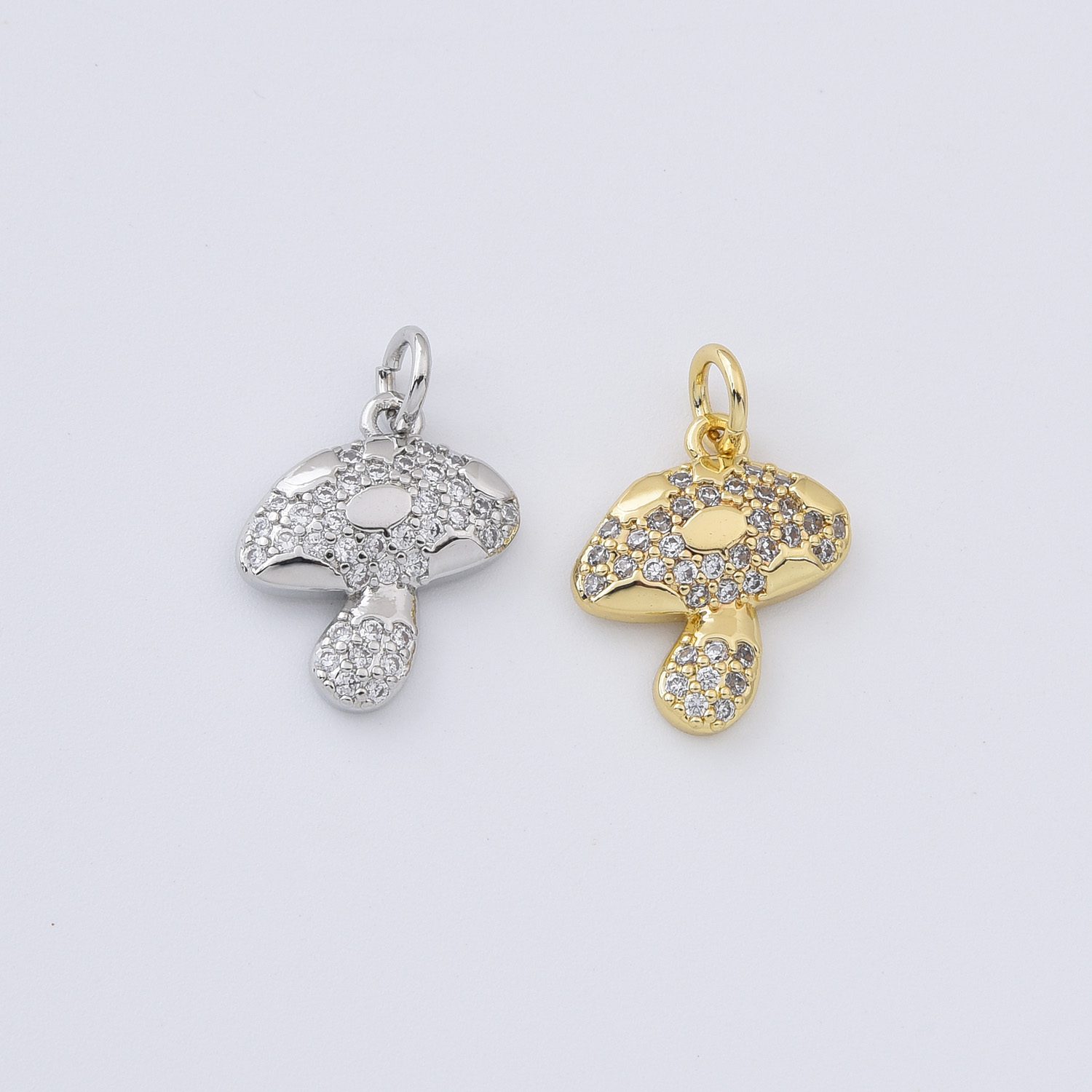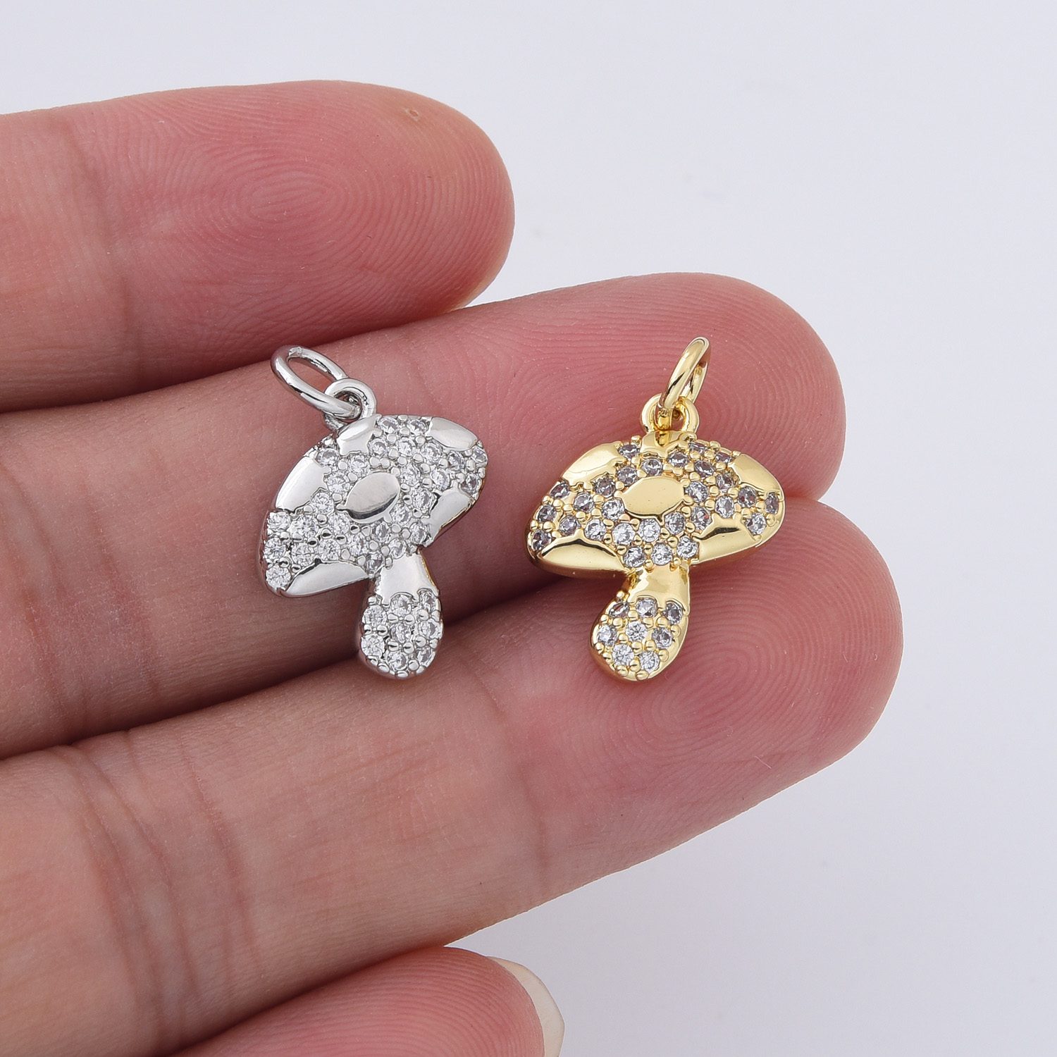 Gold Filled Mushroom Charm Pendant, Silver Tone Crystal Pave Toadstool Charm for DIY Necklace Bracelet Earring Jewelry Making, CP319