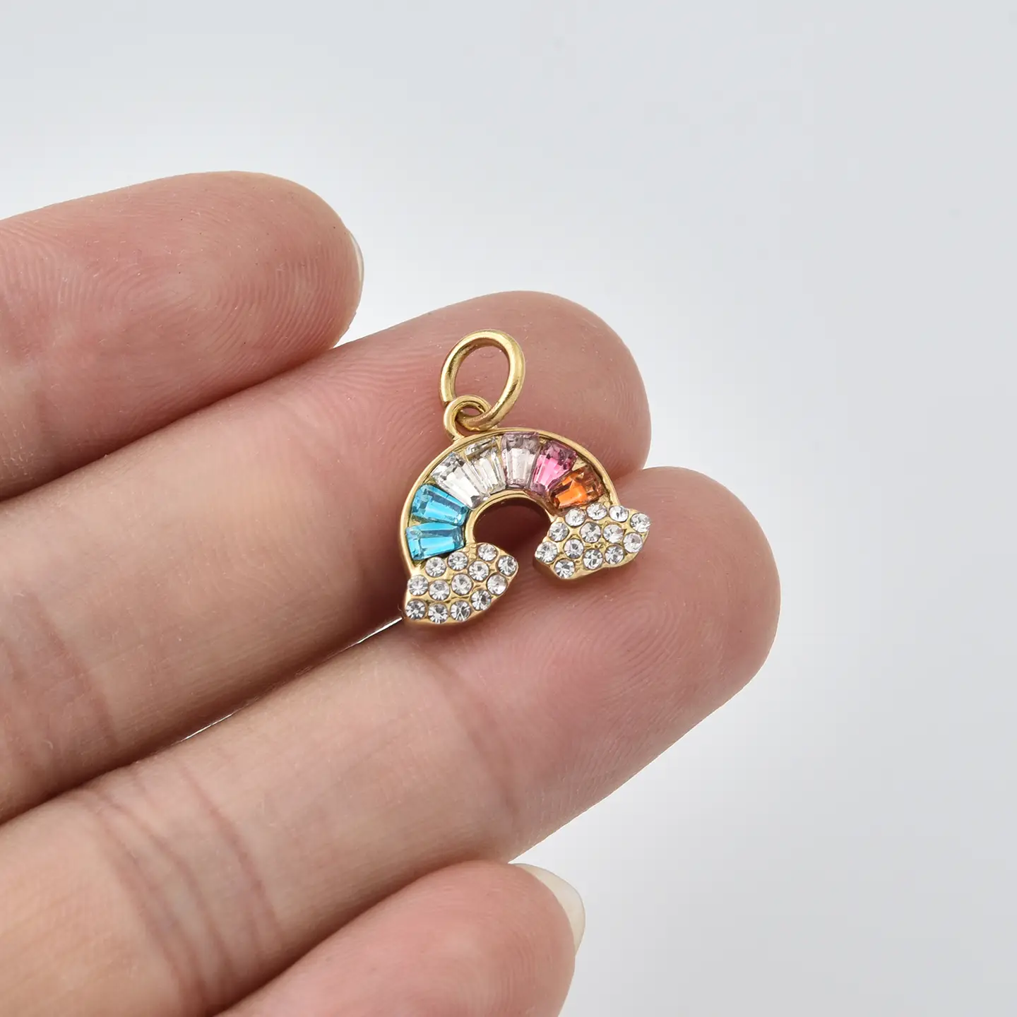 Be the first to review “Stainless Steel Rainbow Charm, Colorful CZ Cloud Pendant for DIY Jewelry Making Necklace Bracelet Charm Supply, Cute Rainbow Charm, SCP235”