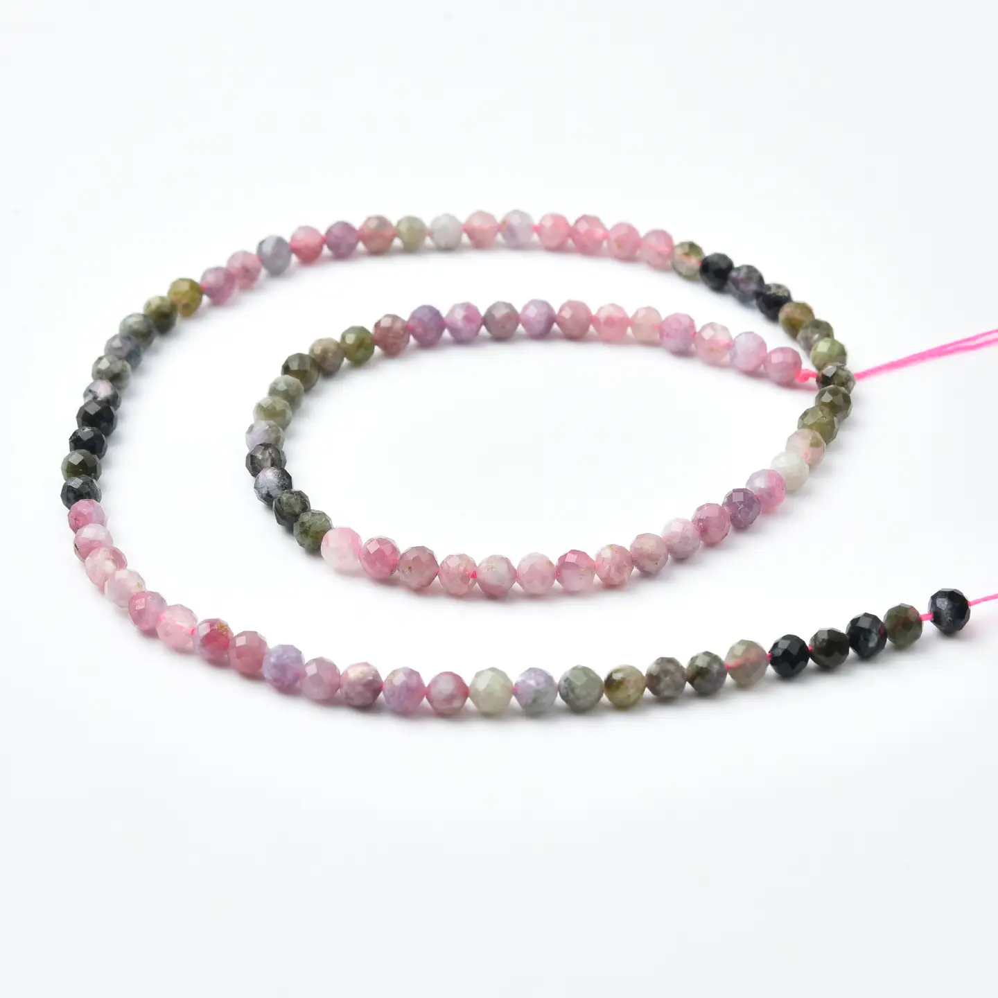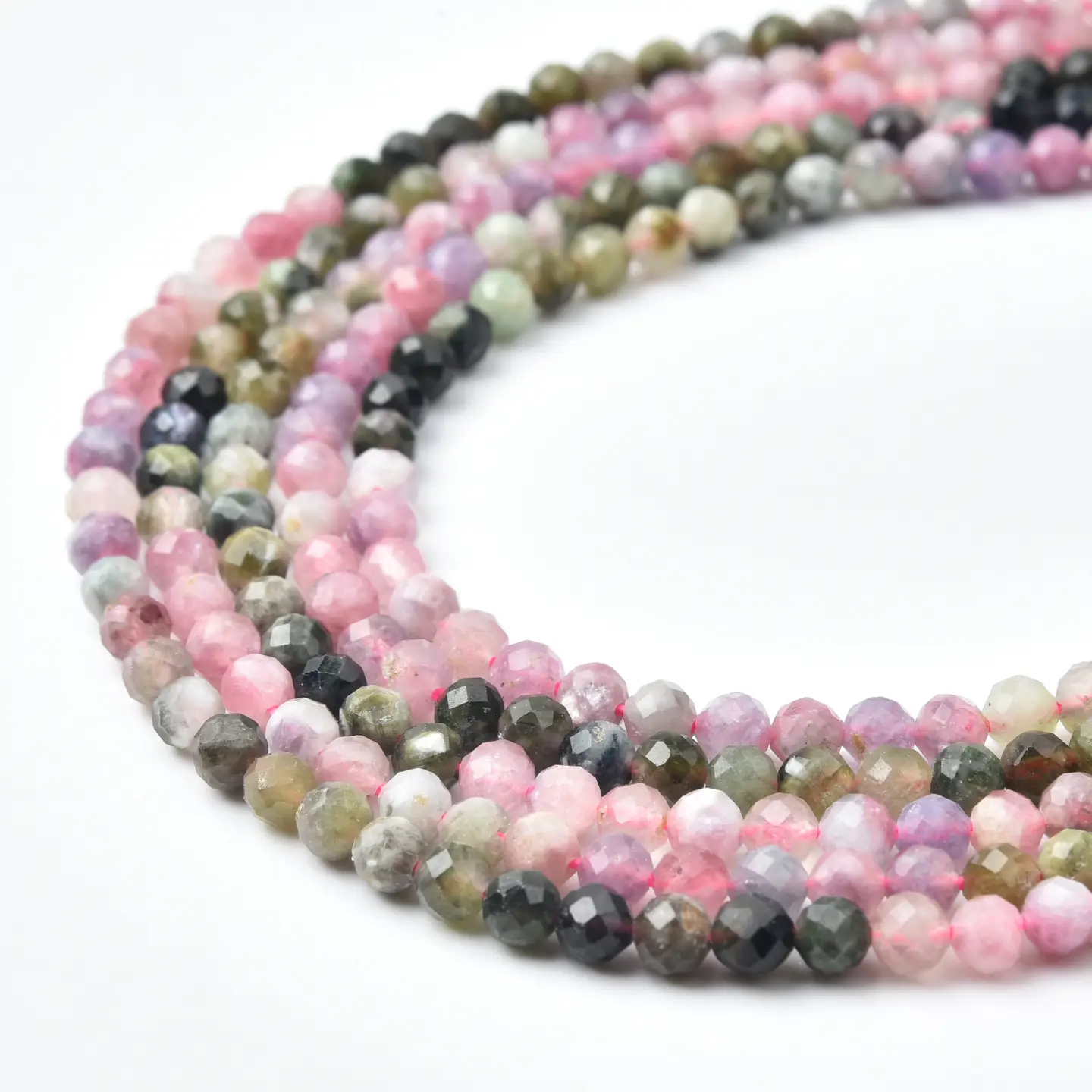 Tourmaline’s naturally occurring multicolor tones — from soft pinks and greens to earthy neutrals — make every strand unique and eye-catching. These micro faceted rounds add refined sparkle, texture, and color depth to both minimalist and luxury jewelry designs.