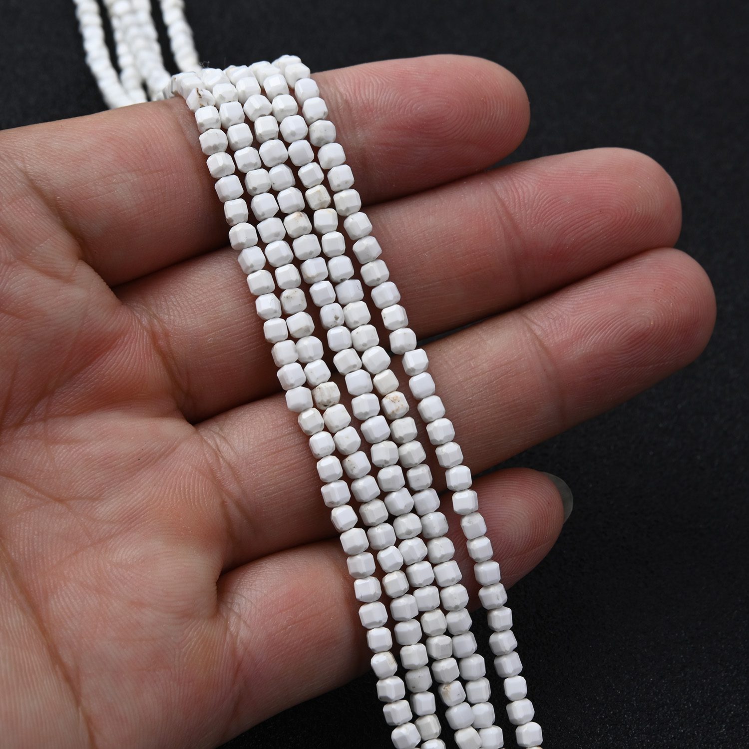 Add striking monochrome beauty to your jewelry designs with these White Buffalo Turquoise 2.6mm Faceted Cube Beads. Each tiny cube is cleanly faceted to enhance the gemstone’s natural white body and bold black matrix, giving your pieces a refined yet earthy look that stands out in any collection.